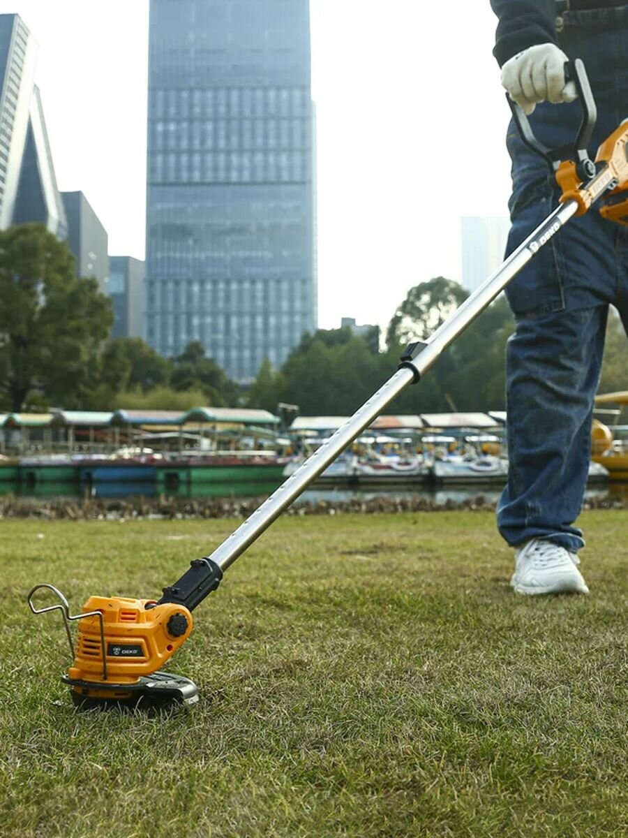 **Триммер-газонокосилка аккумуляторный Deko DKTR21** — удобный и многофункциональный инструмент, предназначенный для обработки газонов и травяных участков. Мощный 20В литий-ионный аккумулятор обеспечивает продолжительную работу без подключения к электросети, что позволяет свободно перемещаться по участку и работать даже в отдаленных местах. За счет продуманной конструкции и D-образной рукоятки эргономичной формы, триммер-газонокосилка удобен в использовании.