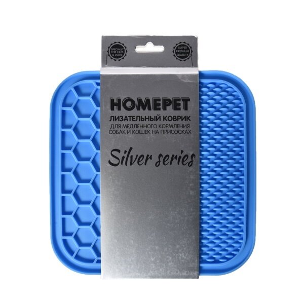 HOMEPET silver series лизательный коврик для медленного кормления собак и кошек на присосках (21 х 21 см. Синий)
