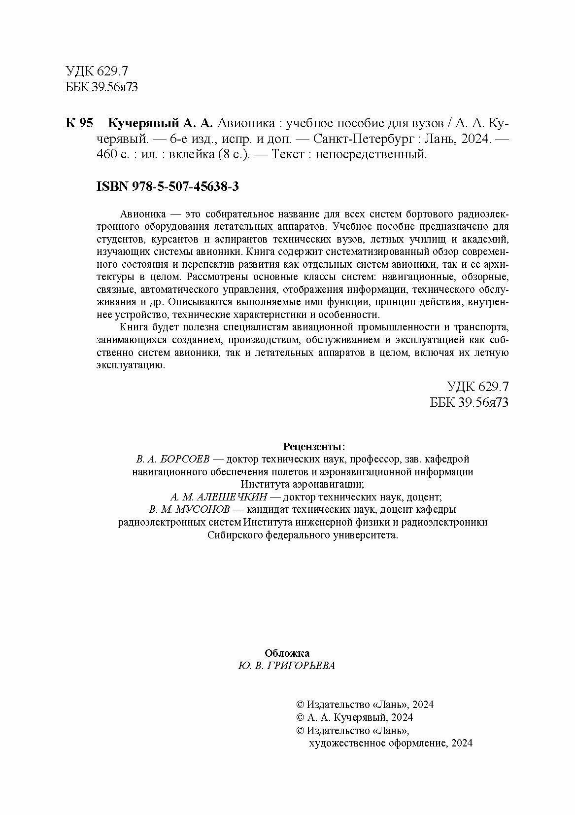 Авионика. Учебное пособие (А. А. Кучерявый); Издательство ЛАНЬ, 2024