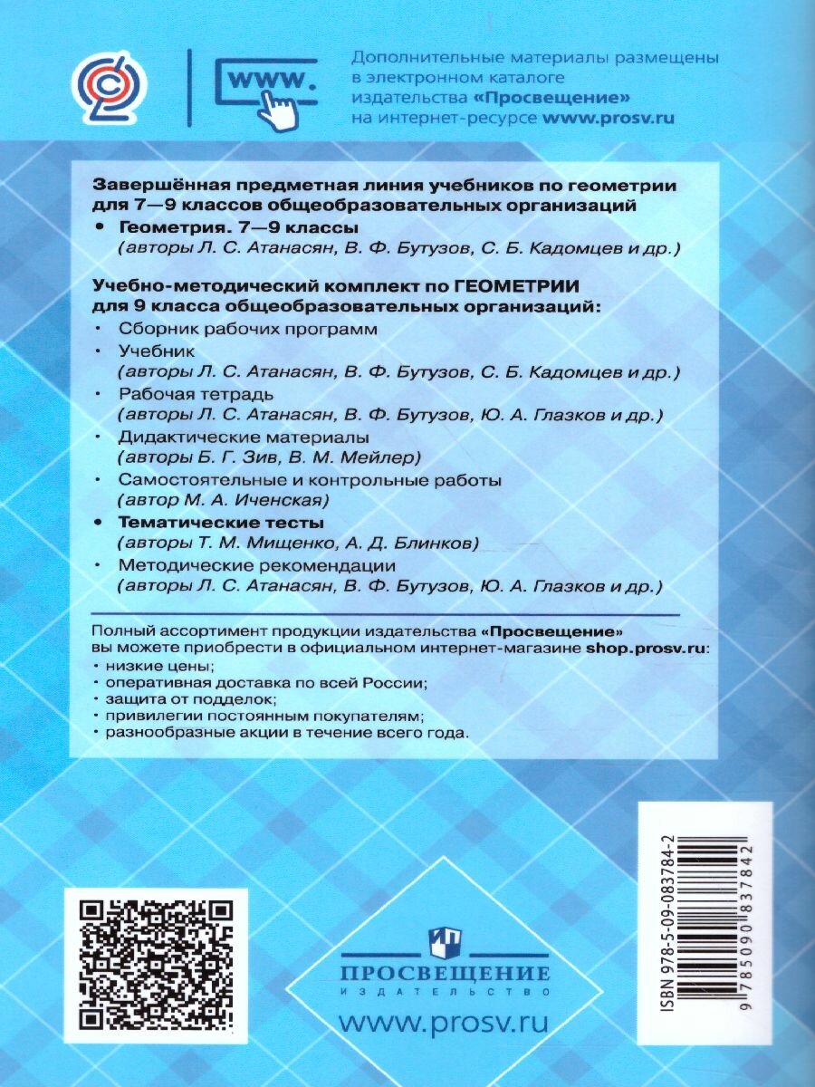Сервис сравнения цен СкидкаГИД предлагает сравнить цены на товар «Книга: Геометрия. Тематические тесты. 9 класс. (89 изд) (Мищенко Татьяна Михайловна; Блинков Александр Давидович); Просвещение, 2022»