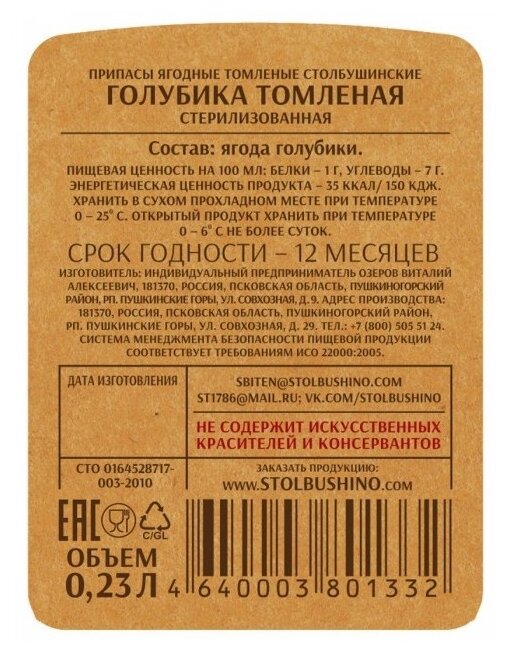 Уникальное варенье, приготовленное из удивительных ягод голубики, собранных в лесах Пушкиногорья. Варенье изготавливается без добавления воды и сахара.