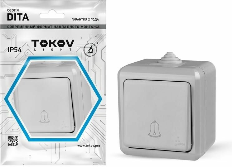 Кнопка TOKOV ELECTRIC звонка ОП Dita IP54 10А 250В сер. TKL-DT-DB-C06-IP54