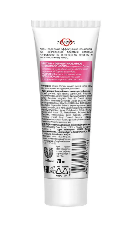 Позаботьтесь о красоте и молодости кожи лица вместе с кремом от концерна КАЛИНА С комплексом пребиотиков! Он придет на помощь, если вы заметили первые признаки старения или усталости кожи. В его составе тщательно отобранные эффективные компоненты, комплексное действие которых направлено на интенсивное питание и восстановление кожи:
