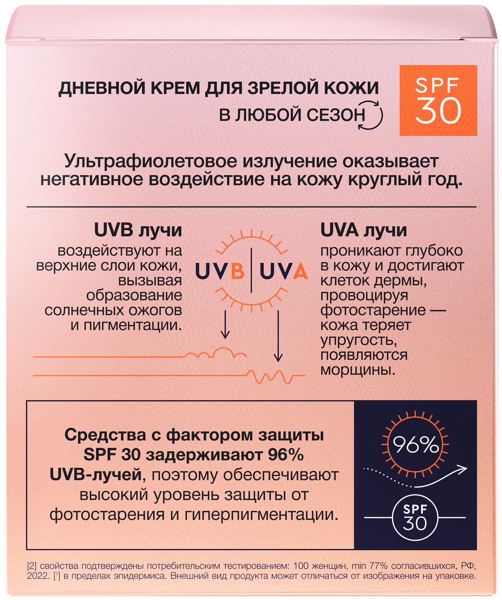 Наслаждайтесь красотой и ухоженной кожей вместе с новинкой от бренда Черный Жемчуг дневным кремом для зрелой кожи с фактором защиты от солнца SPF 30. Он надежно защищает от UV-излучения, препятствует преждевременному старению и гиперпигментации. Активные ингредиенты в составе (аденозин, коллаген, антиоксидантный комплекс OxiFree) замедляют процессы старения, разглаживают морщины и восстанавливают упругость кожи.
