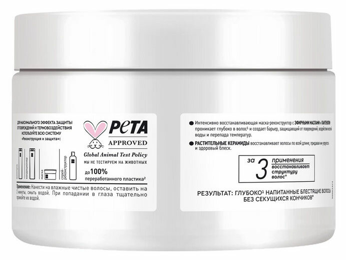 Маска-реконструктор с эфирными маслами и пантенолом глубоко проникает в волос1 и восстанавливает его структуру. Растительные керамиды, содержащиеся в маске, восстанавливают волосы по всей длине и придают локонам упругость и здоровый блеск.