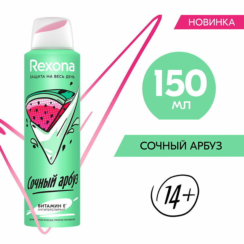 Мечтаешь найти антиперспирант, который был бы не только эффективным, но и мягким, а еще подходящим для молодой и нежной кожи подмышек? Двигайся на территорию уверенности с Rexona. Новый антиперспирант-аэрозоль Сочный арбуз с мягкой формулой это твоя гарантированная 48-часовая защита от пота и неприятных запахов'.
