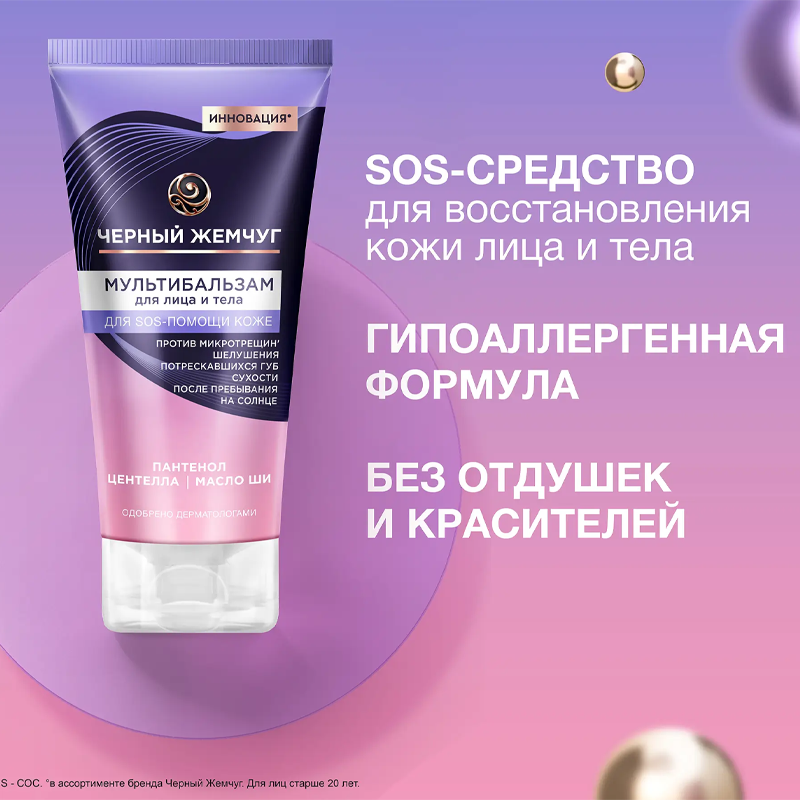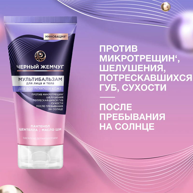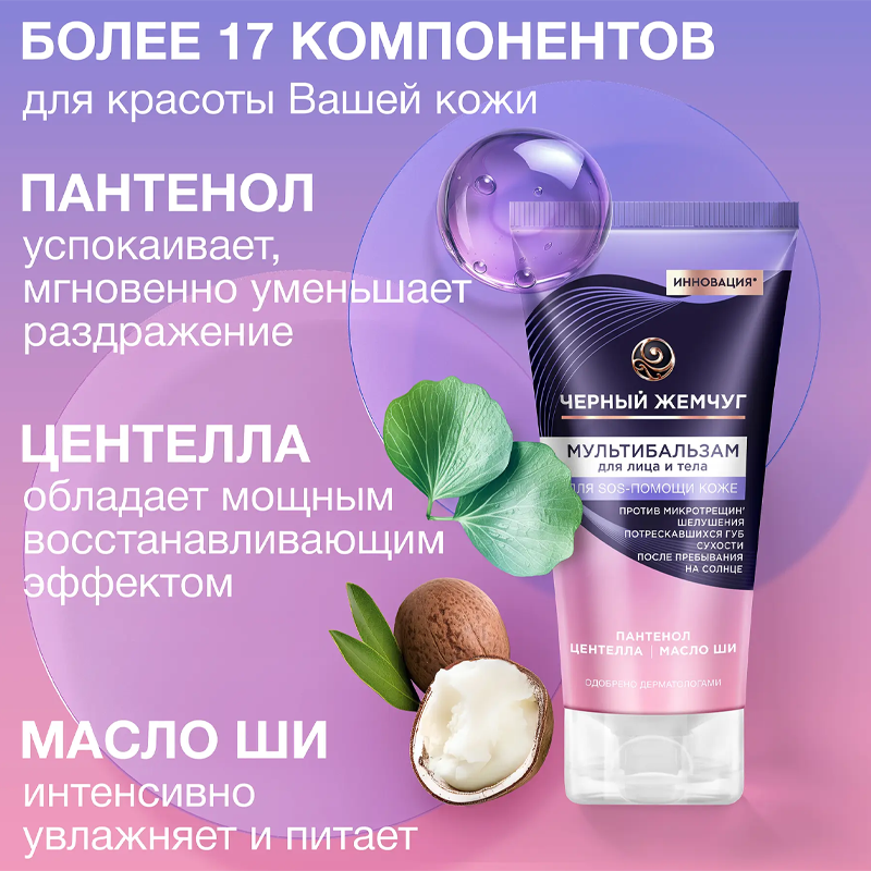 Инновационное * sos-средство от бренда Черный Жемчуг будет кстати в любой косметичке. Оно эффективно борется с различными проблемами кожи, включая сухость, шелушение, обветривание. Формула мультибальзама содержит более 17 активных ингредиентов для эффективного воздействия на кожу лица, губ и тела. Средство подходит для женщин и мужчин с разными типами кожи.