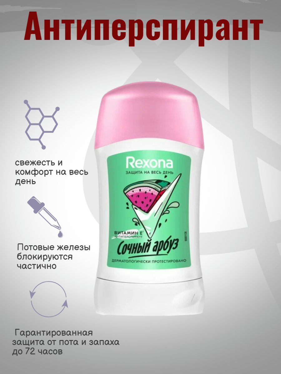 Сервис сравнения цен СкидкаГИД предлагает сравнить цены на товар «Антиперспирант-карандаш Rexona Сочный арбуз защитой от пота и запаха на 48 часов 40 мл»