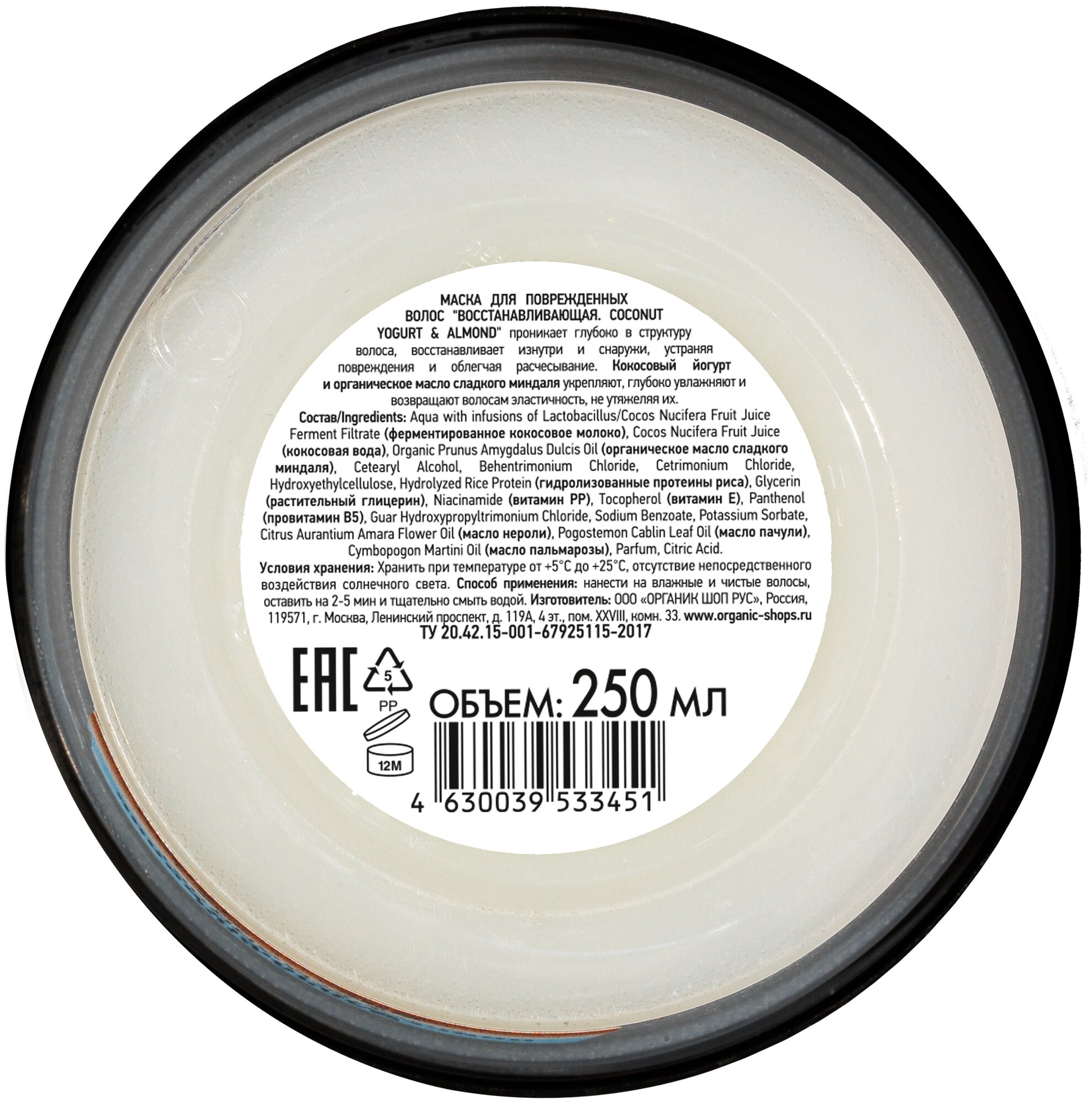 Маска для волос Organic Shop Coconut Yogurt Восстанавливающая 250 мл