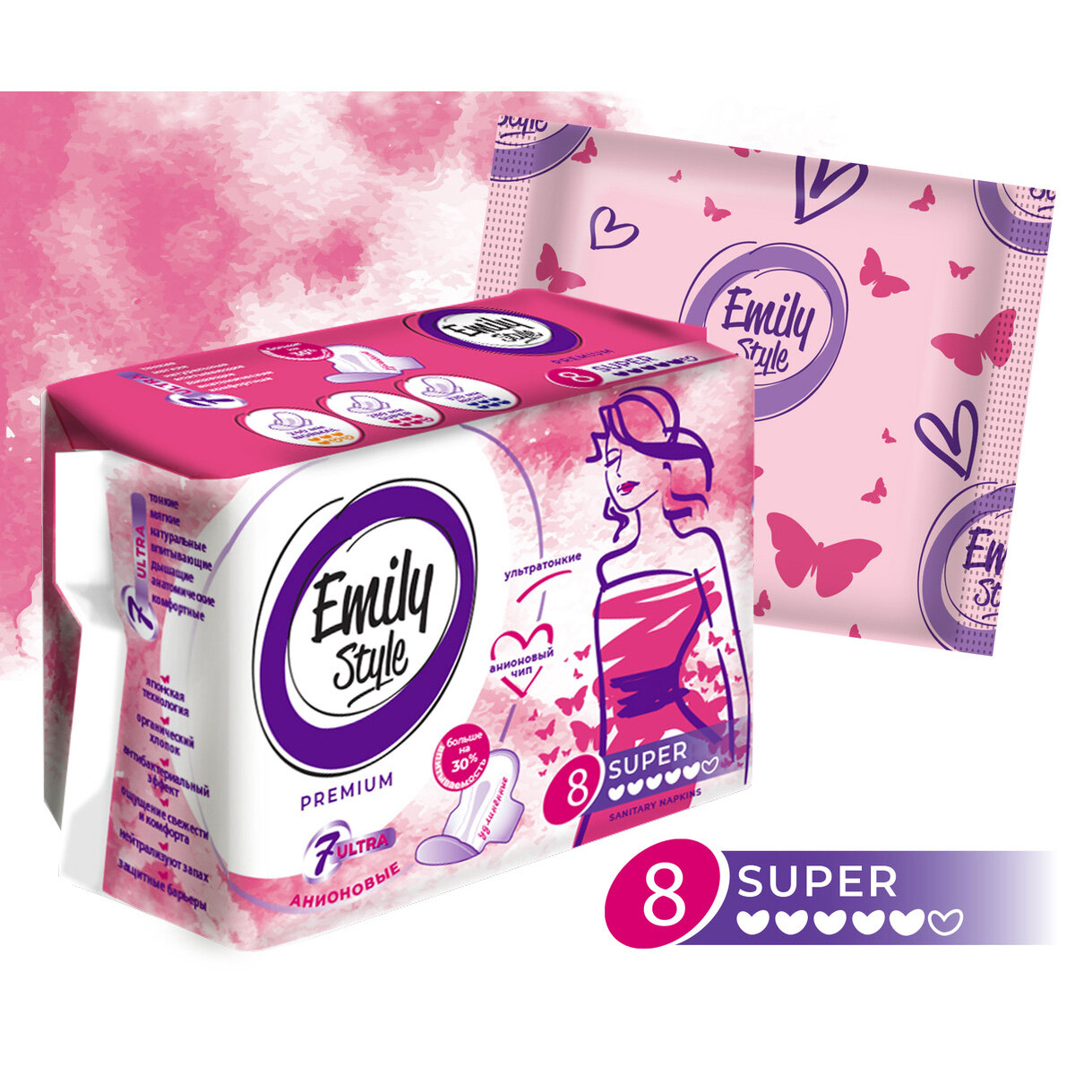 Прокладки гигиенически Emily Style premium super ультратонкие удлиненные 8 шт