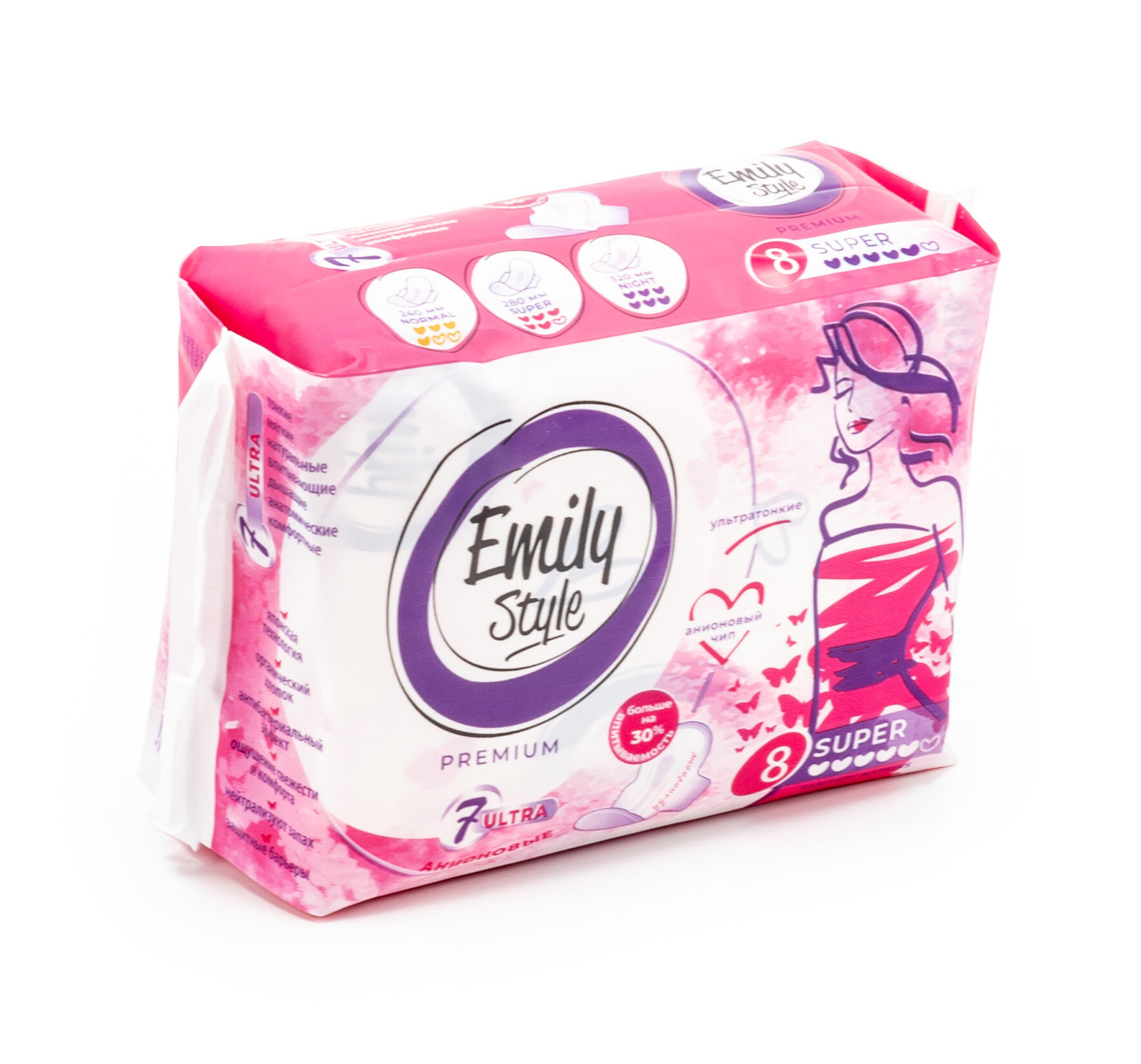 Прокладки гигиенические Emily STYLE SUPER (5 капель) специально созданы для повседневной гигиены женщин во время критических дней. Эффективно впитывают и надежно защищают от протекания, придавая ощущение свежести. Мягкий внутренний слой заботливо защищает кожу от раздражений, позволяет ей дышать. Анионовый чип обладает антибактериальным эффектом и помогает поддерживать естественный баланс микрофлоры.