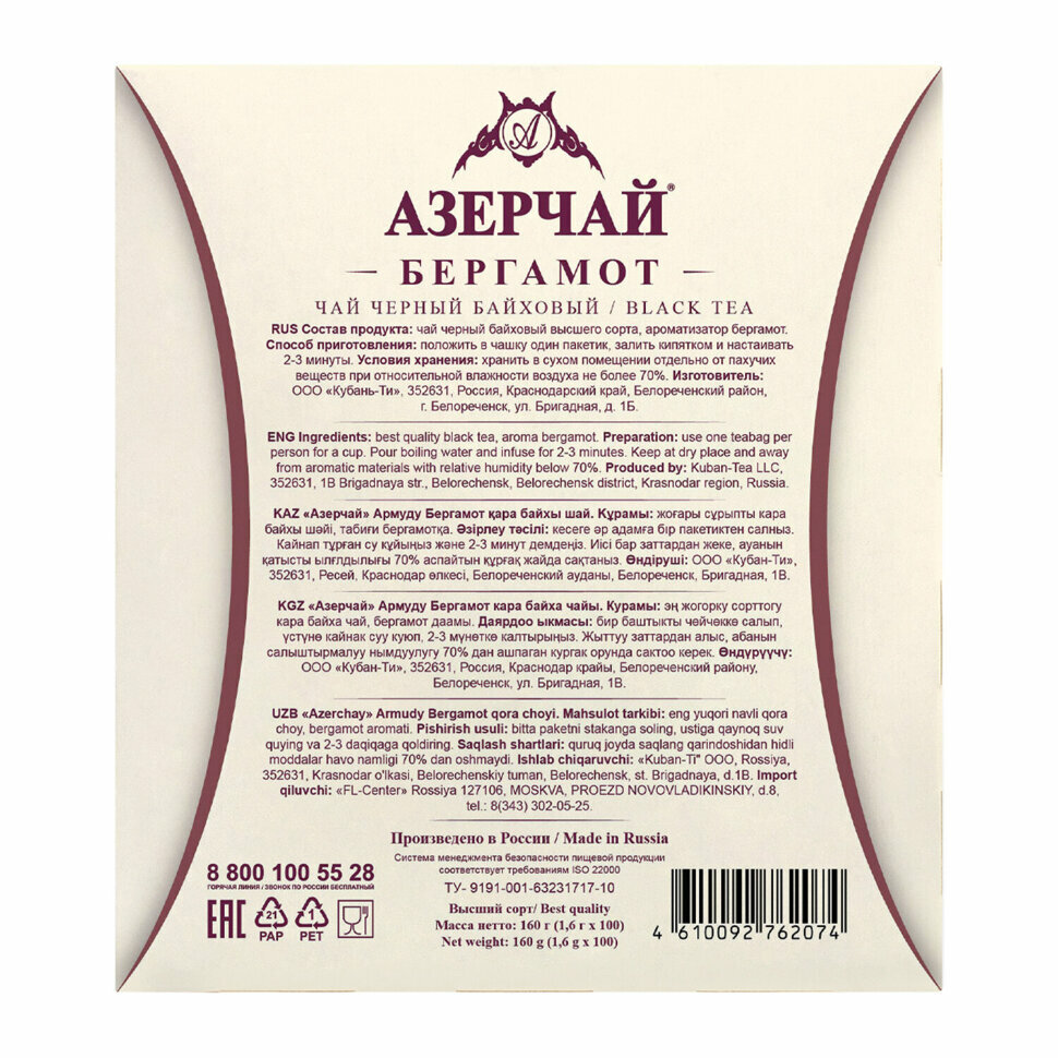 Сервис сравнения цен СкидкаГИД предлагает сравнить цены на товар «Чай черный АЗЕРЧАЙ АрмудуБергамот 100 х 16 г»