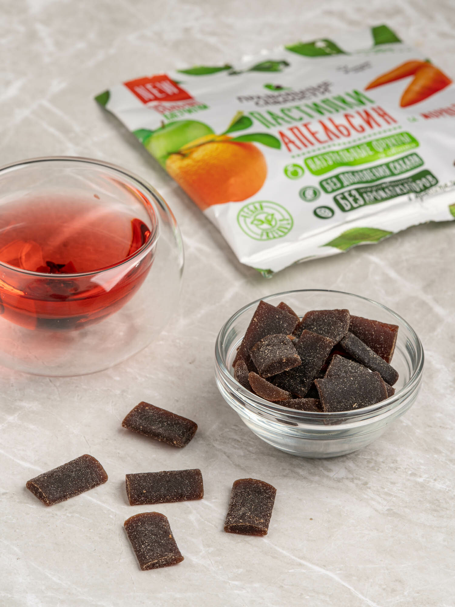 Вкусные и ароматные, низкокалорийные и натуральные фруктовые пастилки из сливового пюре изготавливаются без добавления сахара, красителей и консервантов. Посыпка цитрусовыми волокнами добавляет в пастилки ещё один плюс - клетчатку.