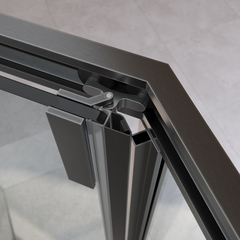 Модель: Relax 304 100x100 RELAX-304-P-1-100-C-GM стекло прозрачное, профиль оружейная сталь