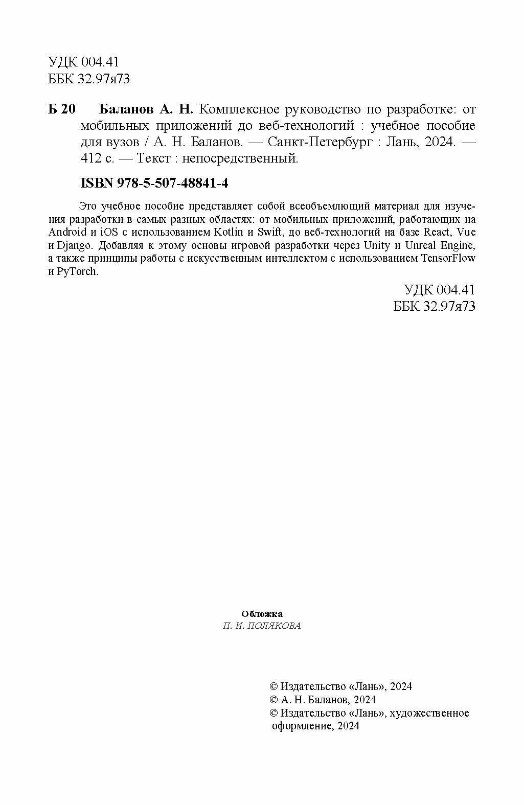 Комплексное руководство по разработке. От мобильных приложений до веб-технологий. Учебное пособие (А. Н. Баланов); Издательство ЛАНЬ, 2024