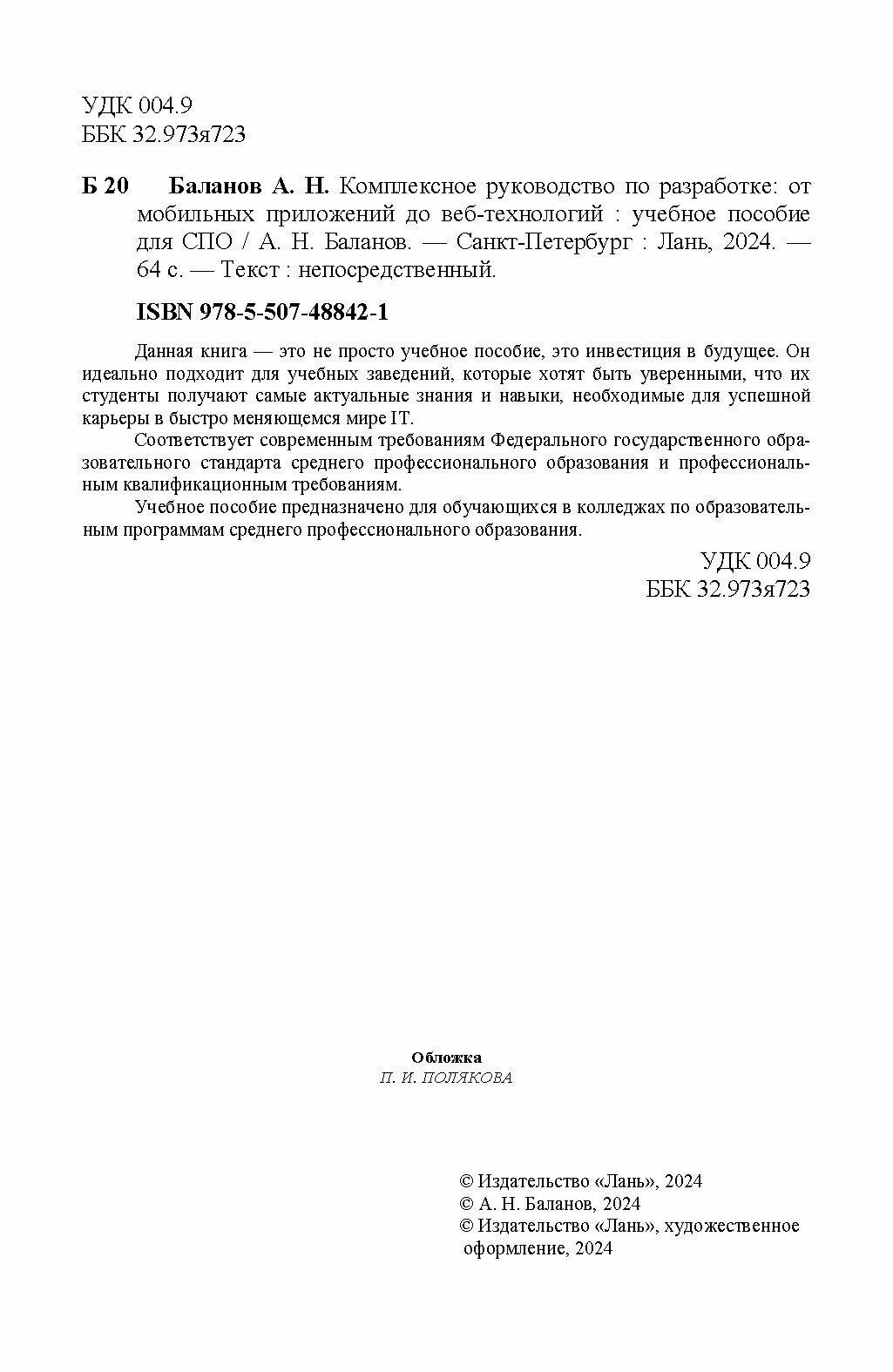 Комплексное руководство по разработке. От мобильных приложений до веб-технологий. Учебное пособие (А. Н. Баланов); Издательство ЛАНЬ, 2024