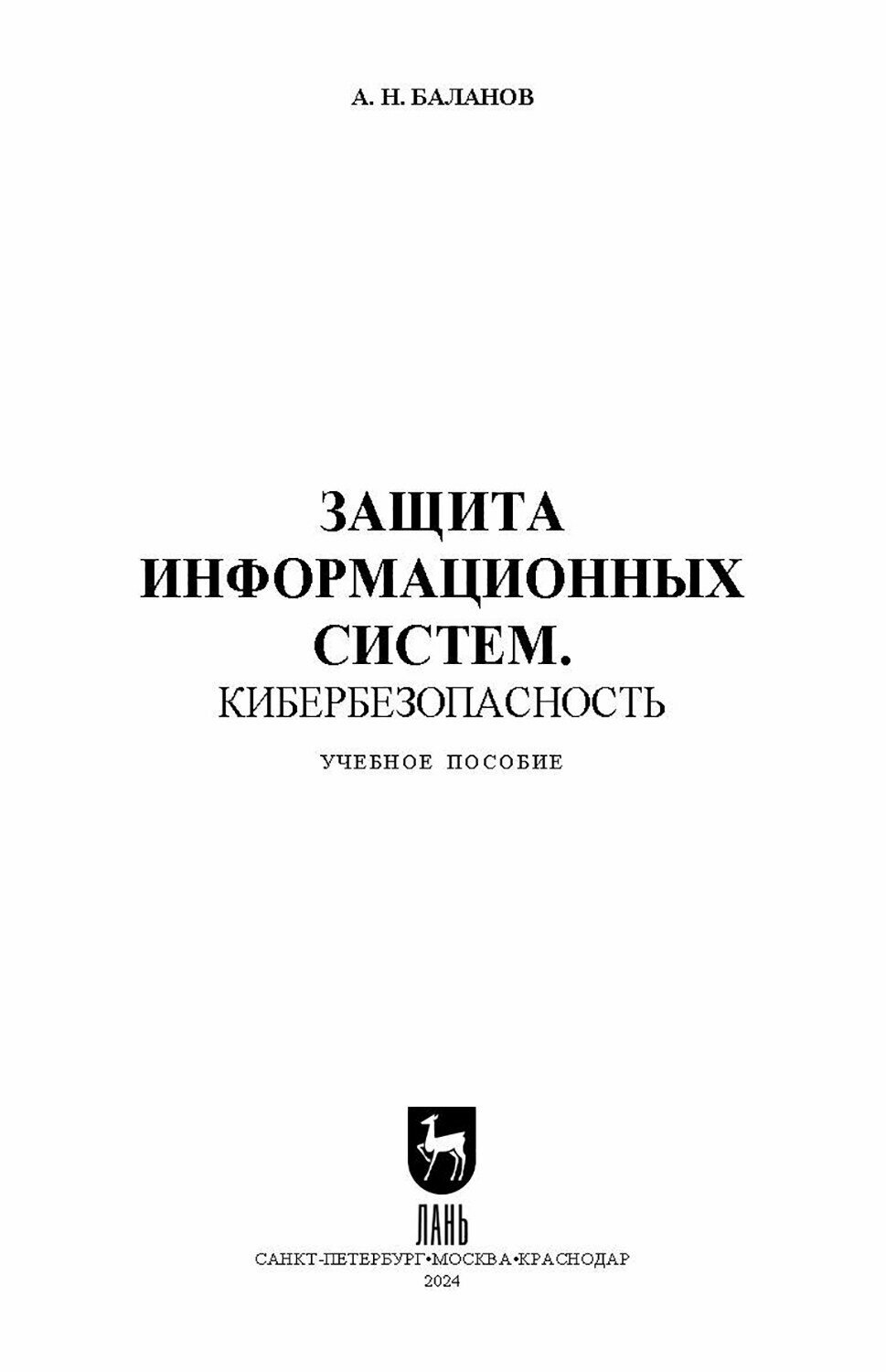 Защита информационных систем. Кибербезопасность. Учебное пособие для СПО (Баланов Антон Николаевич); Лань, 2024