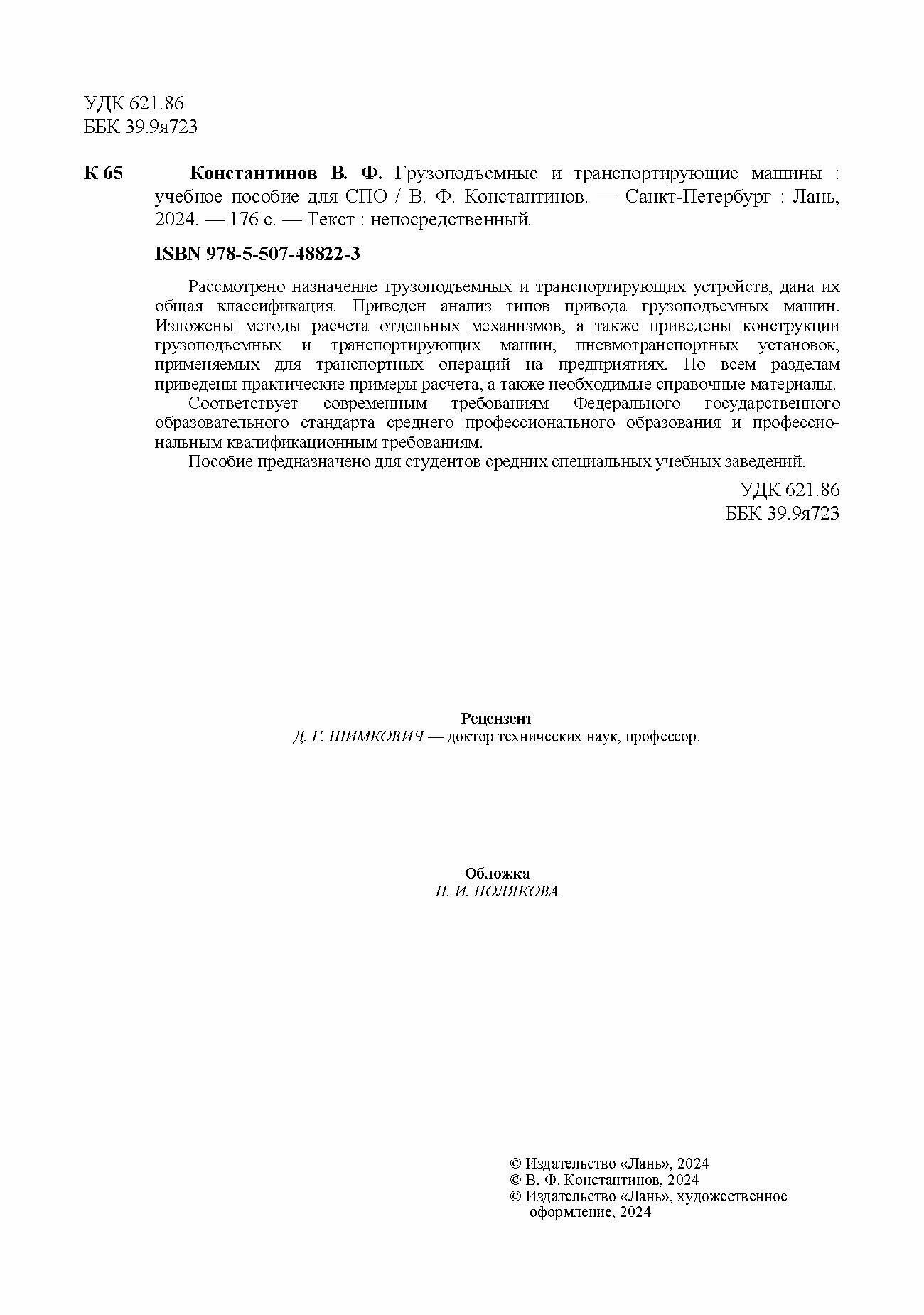Грузоподъемные и транспортирующие машины. Учебное пособие для СПО (Константинов Валерий Федорович); Лань, 2024