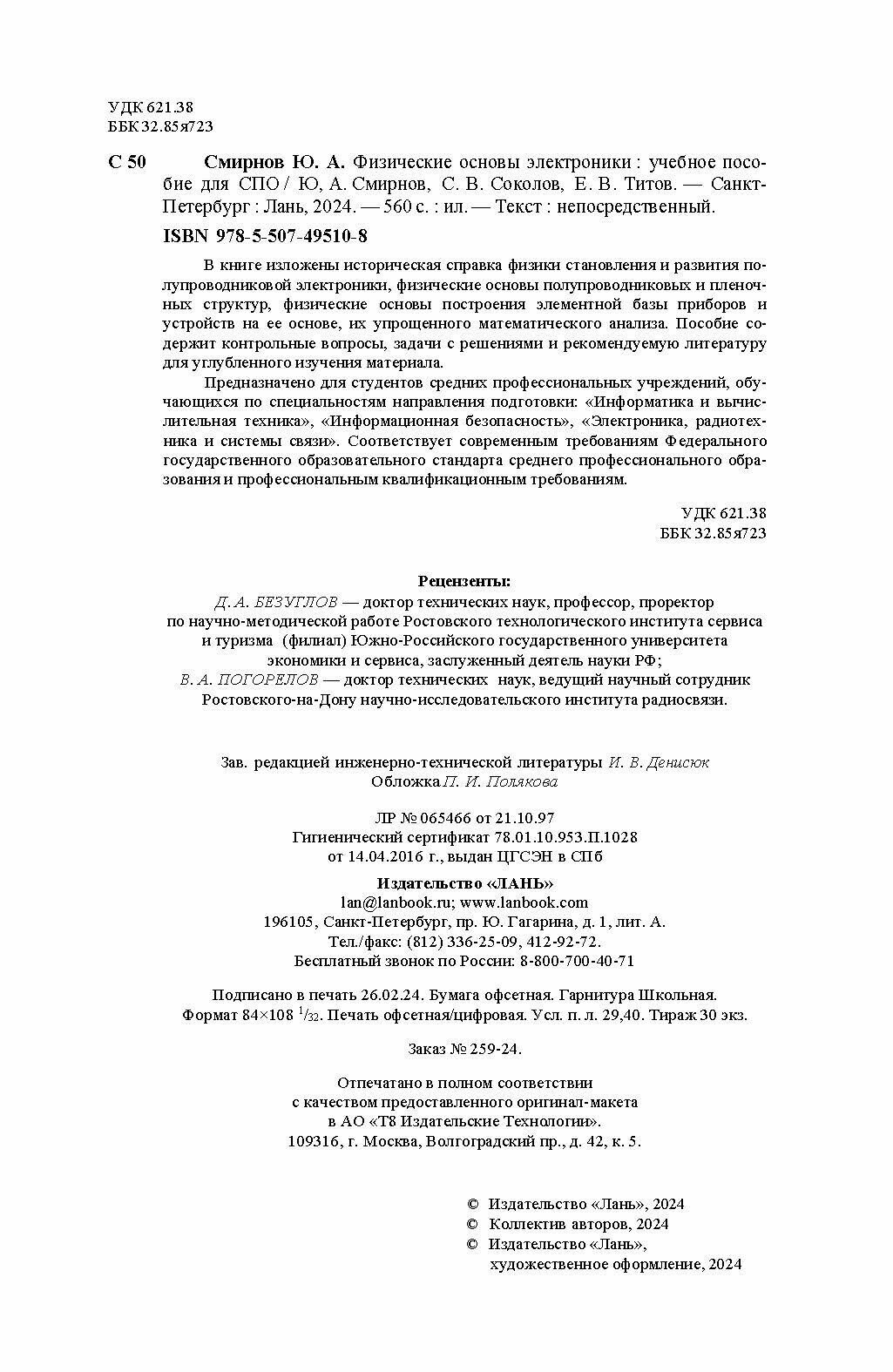 Физические основы электроники. Учебное пособие для СПО (Ю. А. Смирнов); Издательство ЛАНЬ, 2024