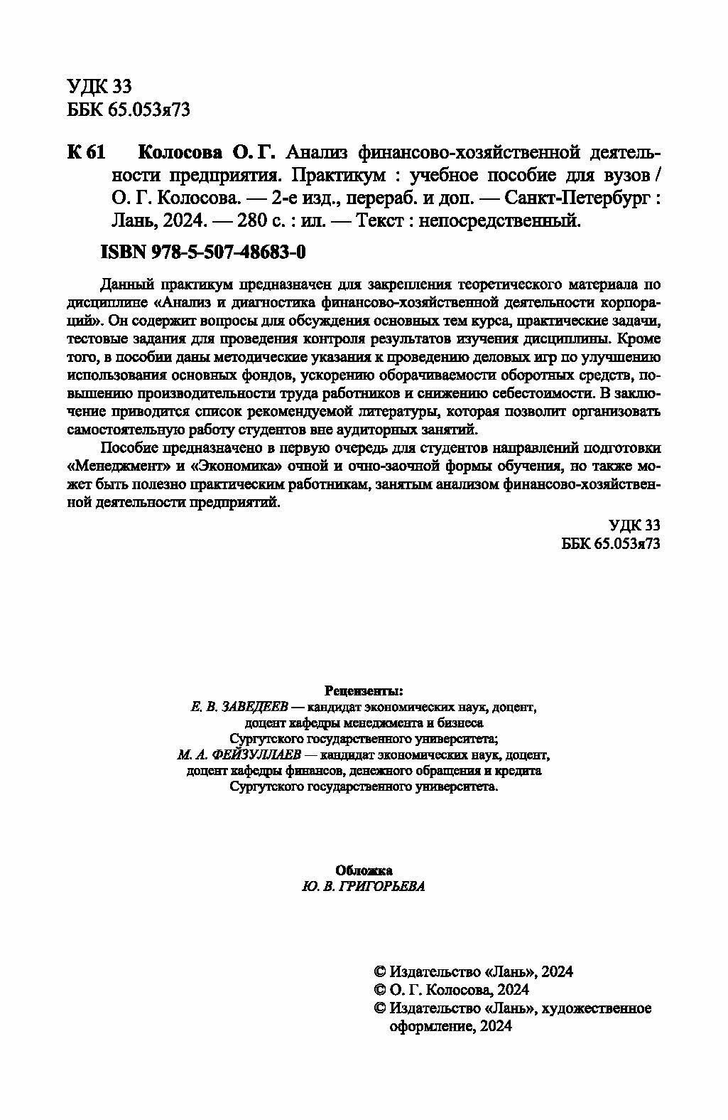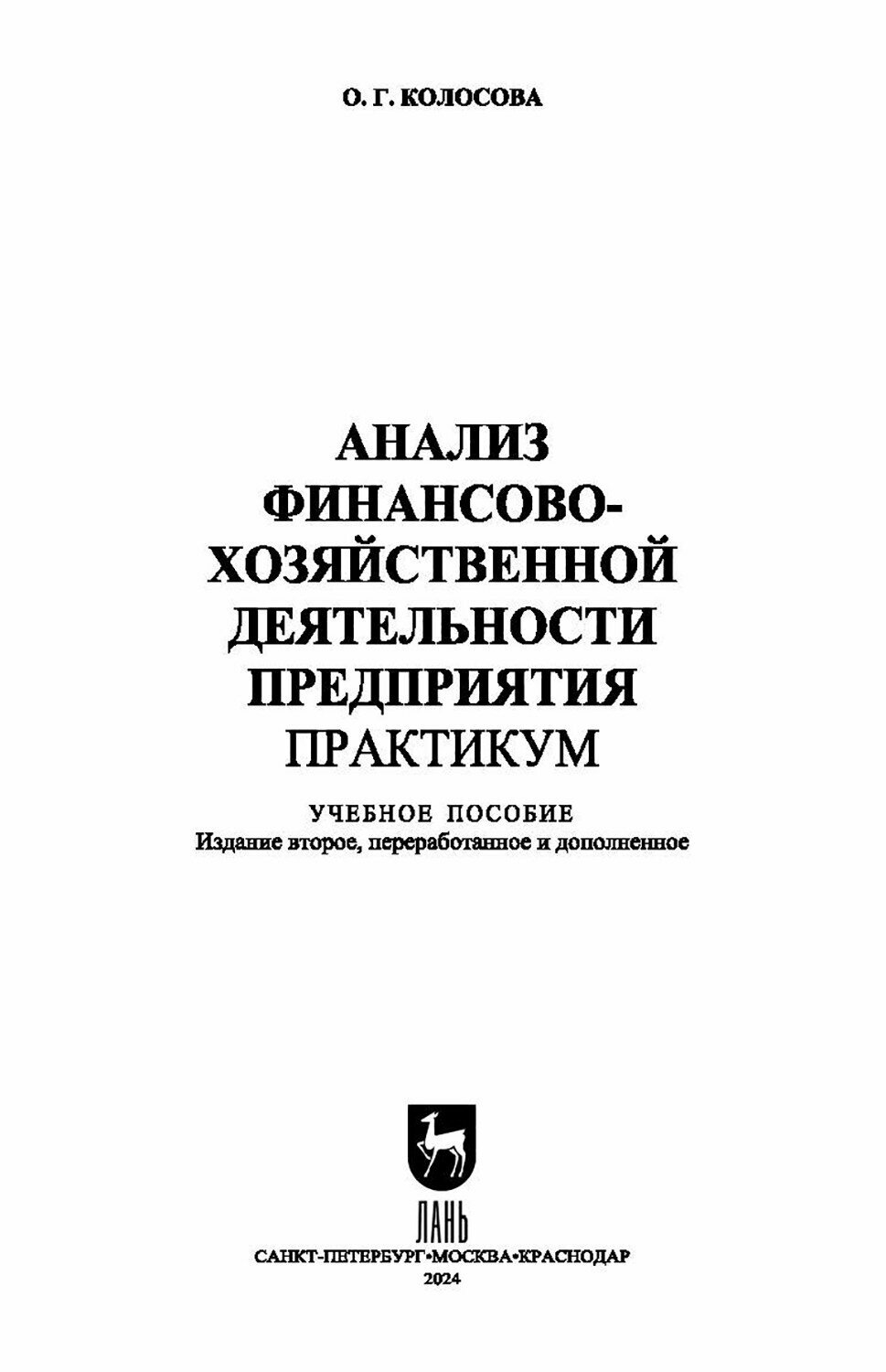 Анализ финансово-хозяйственной деятельности предприятия. Практикум. Учебное пособие для вузов (О. Г. Колосова); Издательство ЛАНЬ, 2024