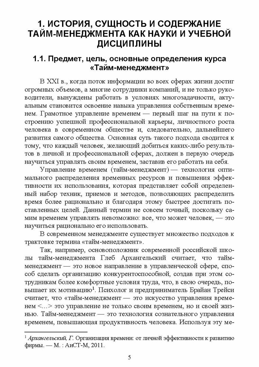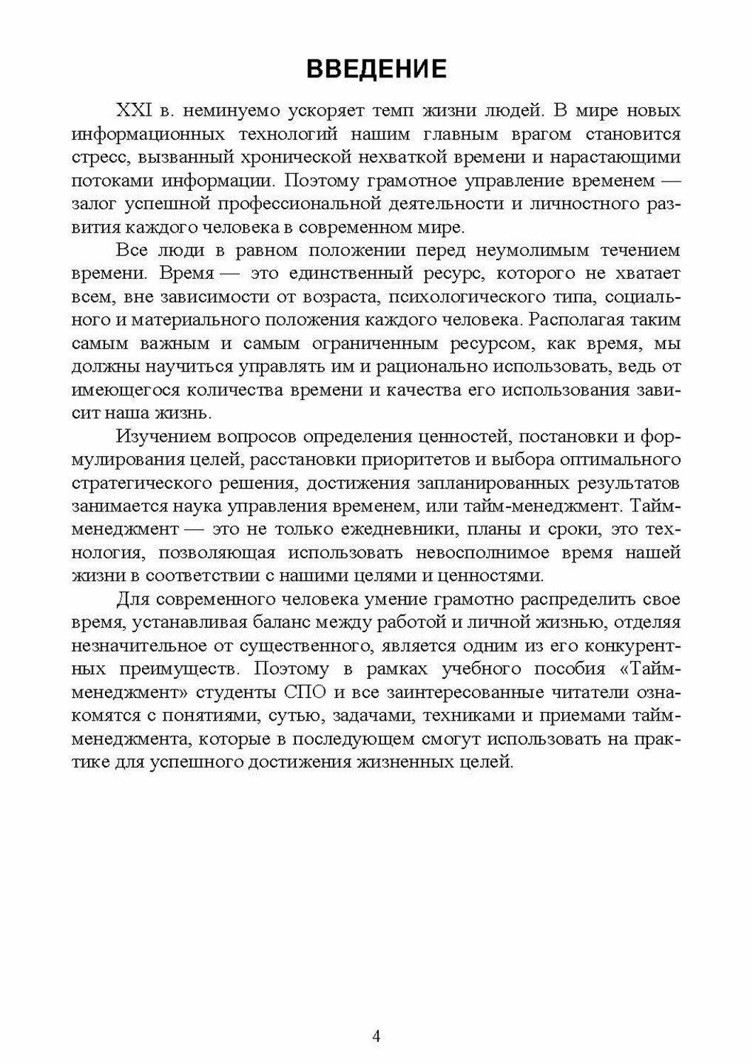 В учебном пособии дается полноценная картина возникновения, развития и современного состояния тайм-менеджмента как науки и учебной дисциплины. А также подробно описывается практическая сторона тайм-менеджмента как средства повышения производственной эффективности организации и личной организованности работников и руководителей компаний. Поэтому материал учебного пособия позволит обучающимся не только получить теоретические знания об управлении временем, но и применить конкретные инструменты и методы тайм-менеджмента на практике. Соответствует современным требованиям Федерального государственного образовательного стандарта среднего профессионального образования и профессиональным квалификационным требованиям. Для студентов колледжей, лицеев, техникумов, училищ, обучающихся по экономическим направлениям подготовки, а также руководителей и специалистов предприятий и организаций, желающих повысить эффективность как личного труда, так и организации в целом.