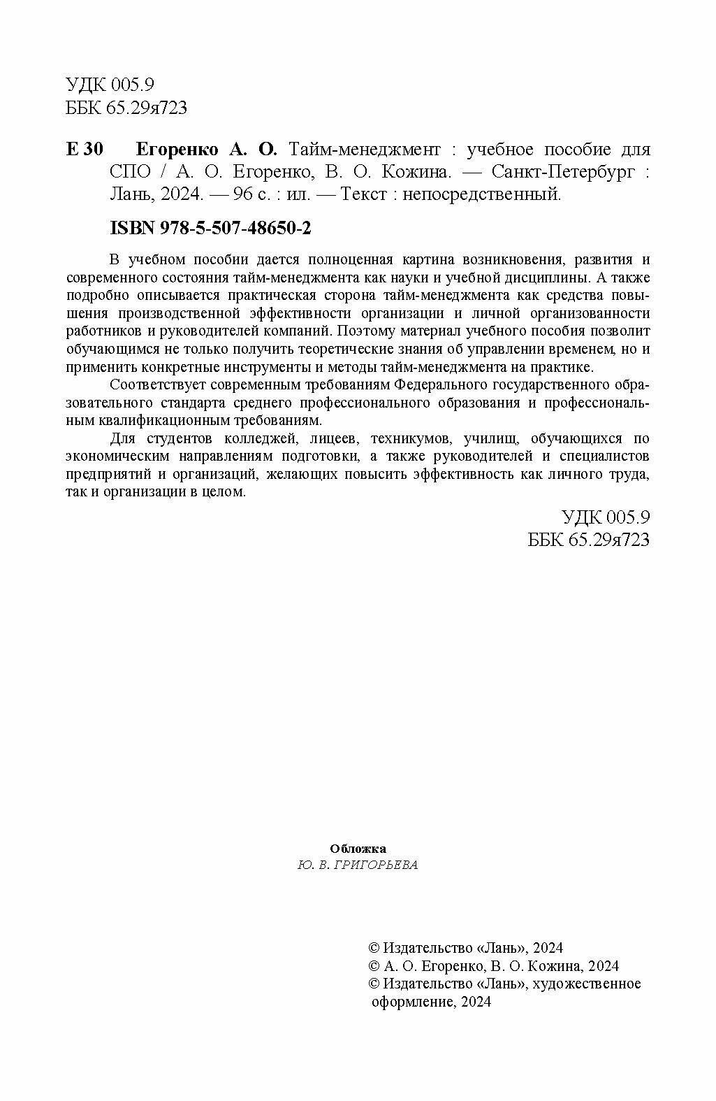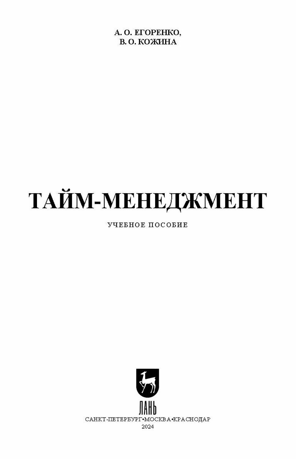 Тайм-менеджмент. Учебное пособие для СПО (Вероника Олеговна Кожина); Издательство ЛАНЬ, 2024