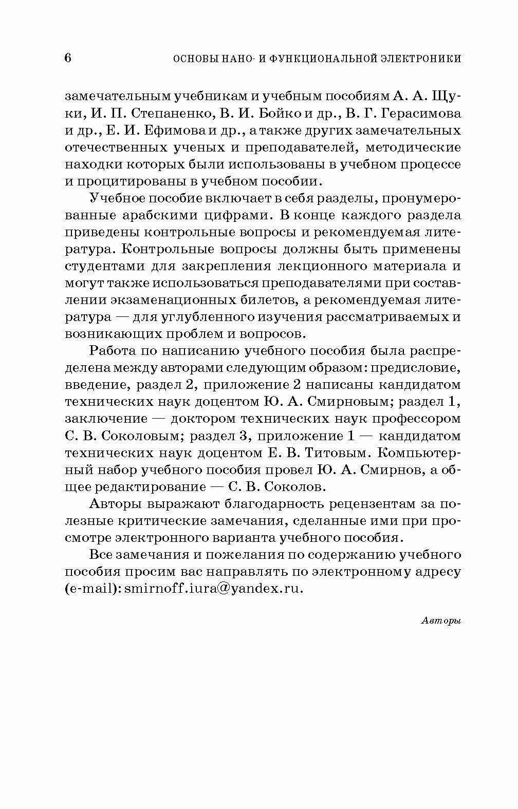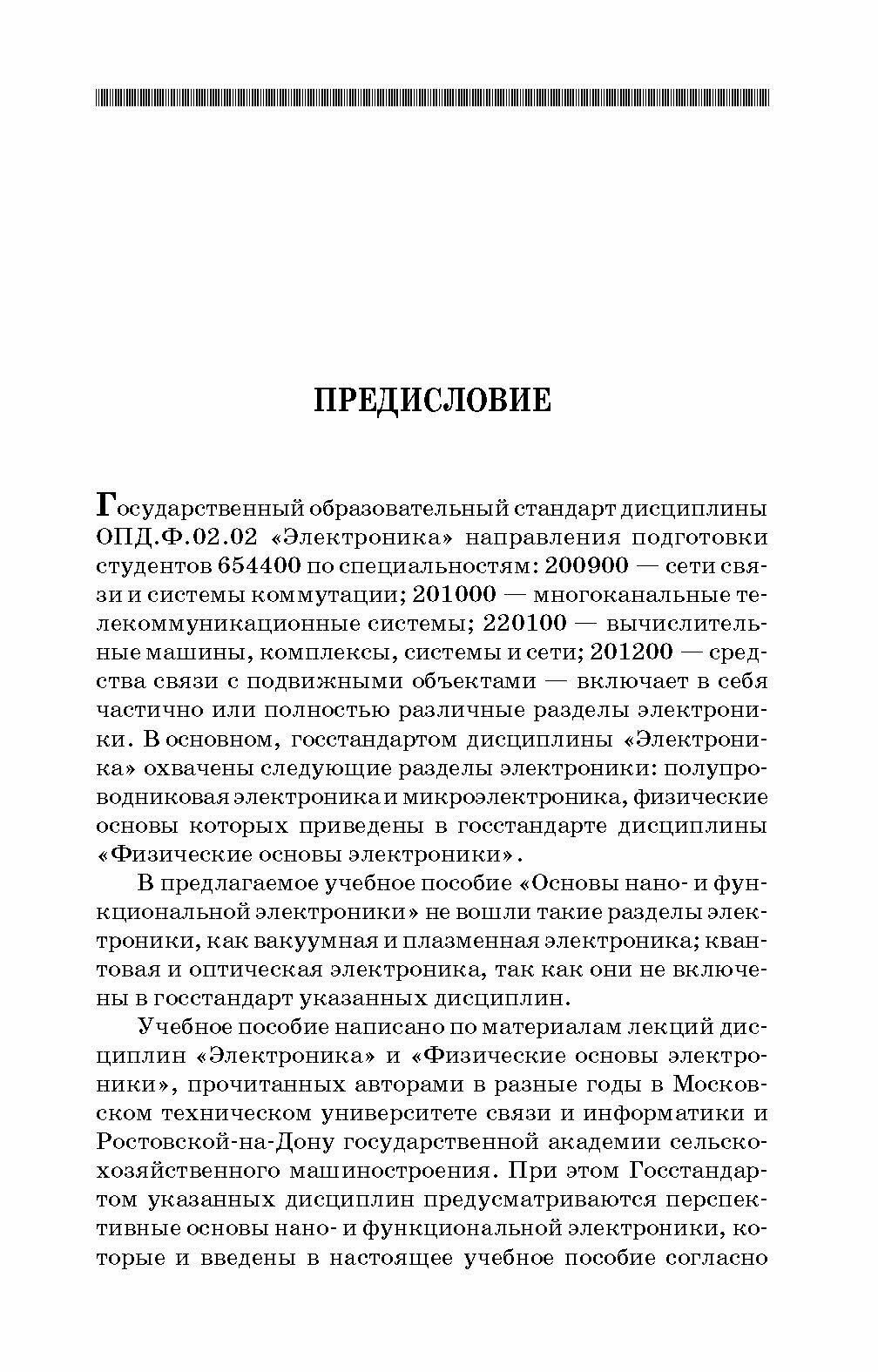 В книге изложены историческая справка физики становления и развития наноэлектроники, физические основы наноструктур и приборов наноэлектроники, физические и микросистемные основы построения элементной базы приборов и устройств направлений развития функциональной электроники (акустоэлектроники, диэлектрической электроники, полупроводниковой электроники, магнитоэлектроники, оптоэлектроники, молекулярной электроники). Пособие содержит контрольные вопросы, задачи с решениями и списки рекомендуемой литературы для углубленного изучения материала. Предназначено для студентов средних профессиональных учреждений, обучающихся по специальностям направления подготовки: "Информатика и вычислительная техника", "Информационная безопасность", "Электроника, радиотехника и системы связи". Соответствует современным требованиям Федерального государственного образовательного стандарта среднего профессионального образования и профессиональным квалификационным требованиям.