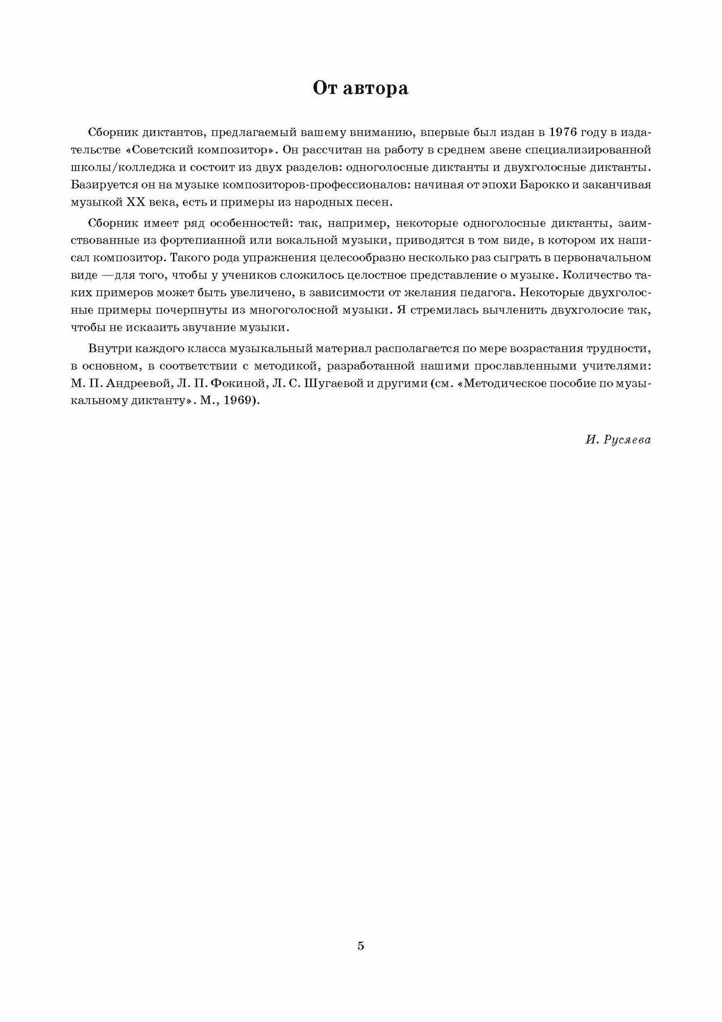 Сборник диктантов составлен на основе музыки композиторов разных стилей и эпох - начиная с эпохи барокко и включая двадцатый век. Материал делится на две части: одноголосные диктанты и двухголосные диктанты. Внутри каждого раздела музыкальный материал расположен по мере возрастания трудности, как и полагается по методике диктанта. Учебное пособие позволяет ближе познакомиться с музыкой различных композиторов на примере записываемых диктантов. Соответствует современным требованиям Федерального государственного образовательного стандарта среднего профессионального образования и профессиональным квалификационным требованиям. Рекомендовано для студентов музыкальных колледжей.