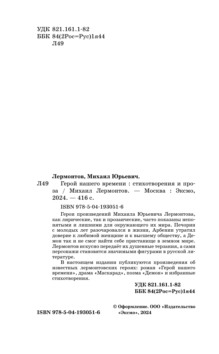 Герой нашего времени. Стихотворения и проза (Лермонтов Михаил Юрьевич); Эксмо, 2024