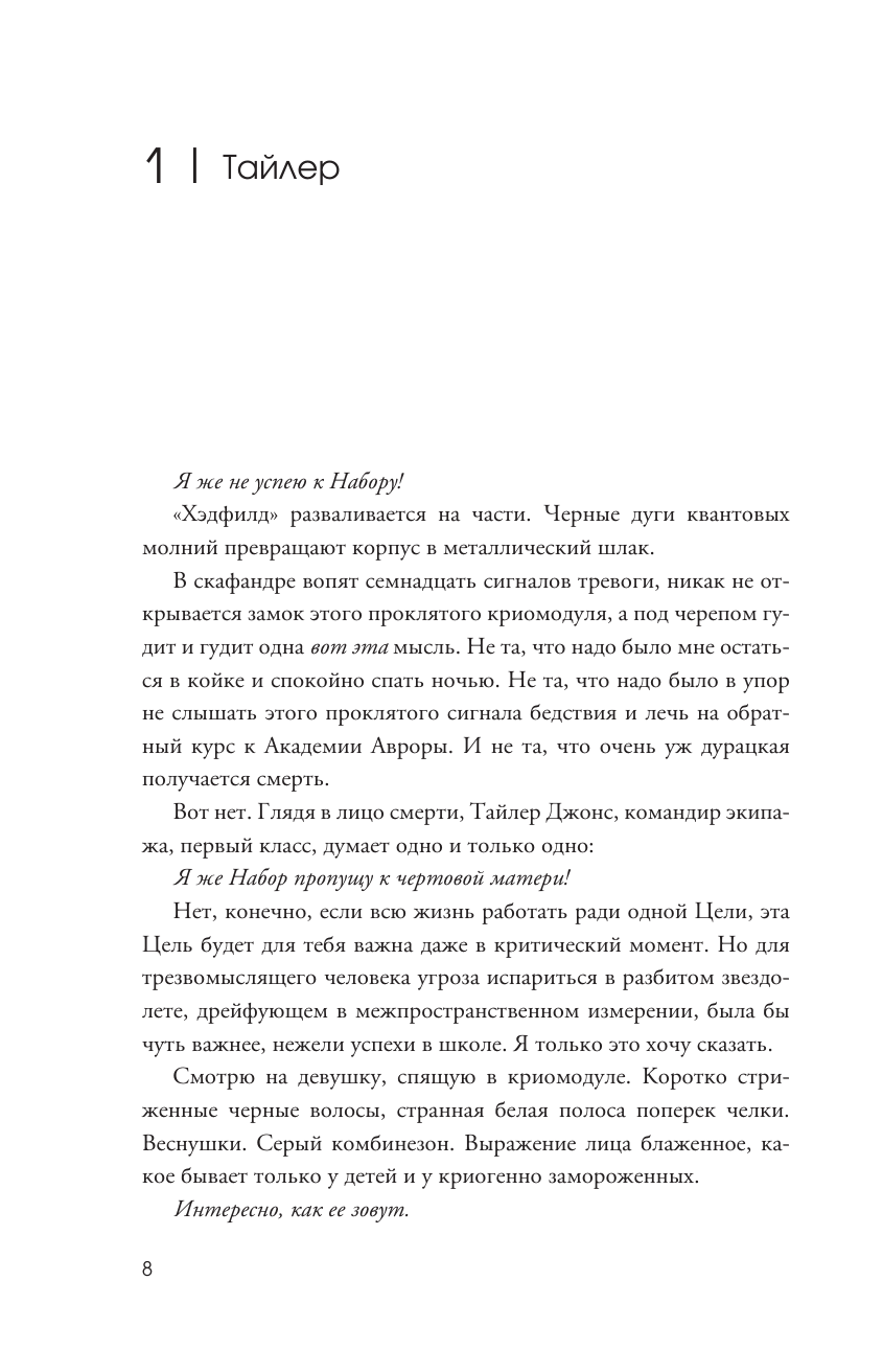На дворе 2380 год, и выпускники Академии Авроры получают свои первые задания. Звездный ученик Тайлер Джонс готов набрать команду своей мечты. Однако его глупый героизм приводит к тому, что теперь его отряд состоит из отъявленных аутсайдеров, которых никто никогда бы не взял. Дерзкий дипломат с черным поясом в сарказме. Ученый-социопат, любящий стрелять в своих соседей по комнате. Технический гений с самым большим чипом в галактике на плече. Инопланетный воин, не умеющий справляться с собственным гневом. Пилот-сорванец, которому Тайлер совершенно не нравится, если вам интересно. Но самая большая проблема Джонса — это Аврора Цзе-Линь О’Мэлли, девушка, которую он спас. Запертая в криосне на два столетия, Аврора — девушка вне времени, возможный катализатор, который начнет войну, назревающую миллионы лет. А команда Тайлера, состоящая из неудачников и нарушителей дисциплины, может стать последней надеждой для всей галактики.