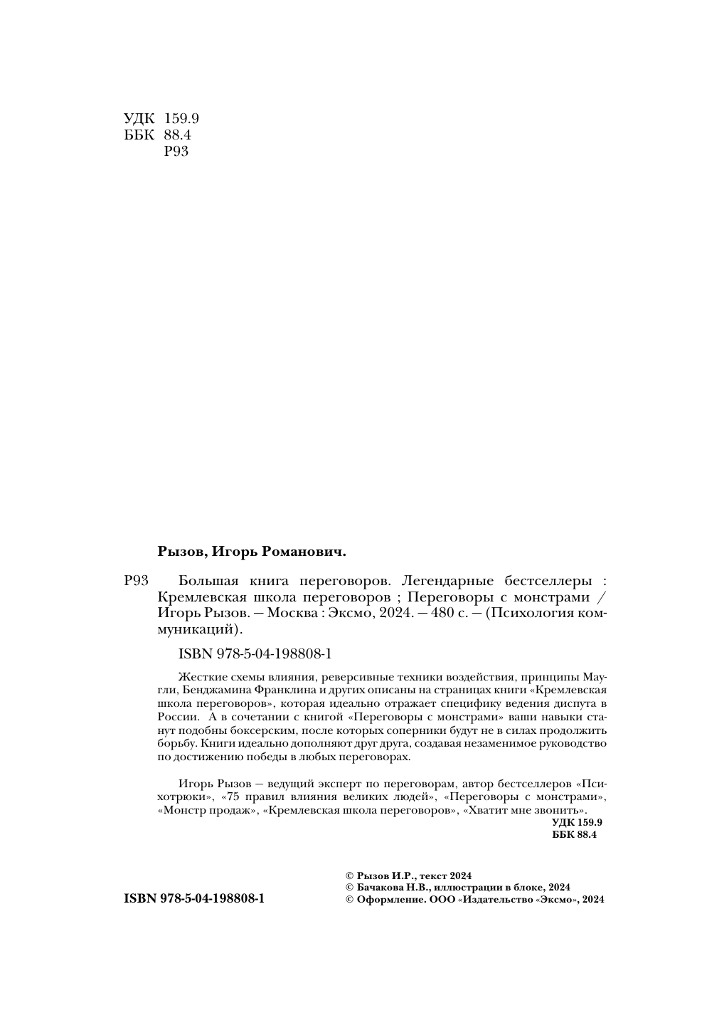 Большая книга переговоров. Легендарные бестселлеры: Кремлевская школа переговоров; Переговоры с монстрами (Игорь Романович Рызов); ООО "Издательство "Эксмо", 2025
