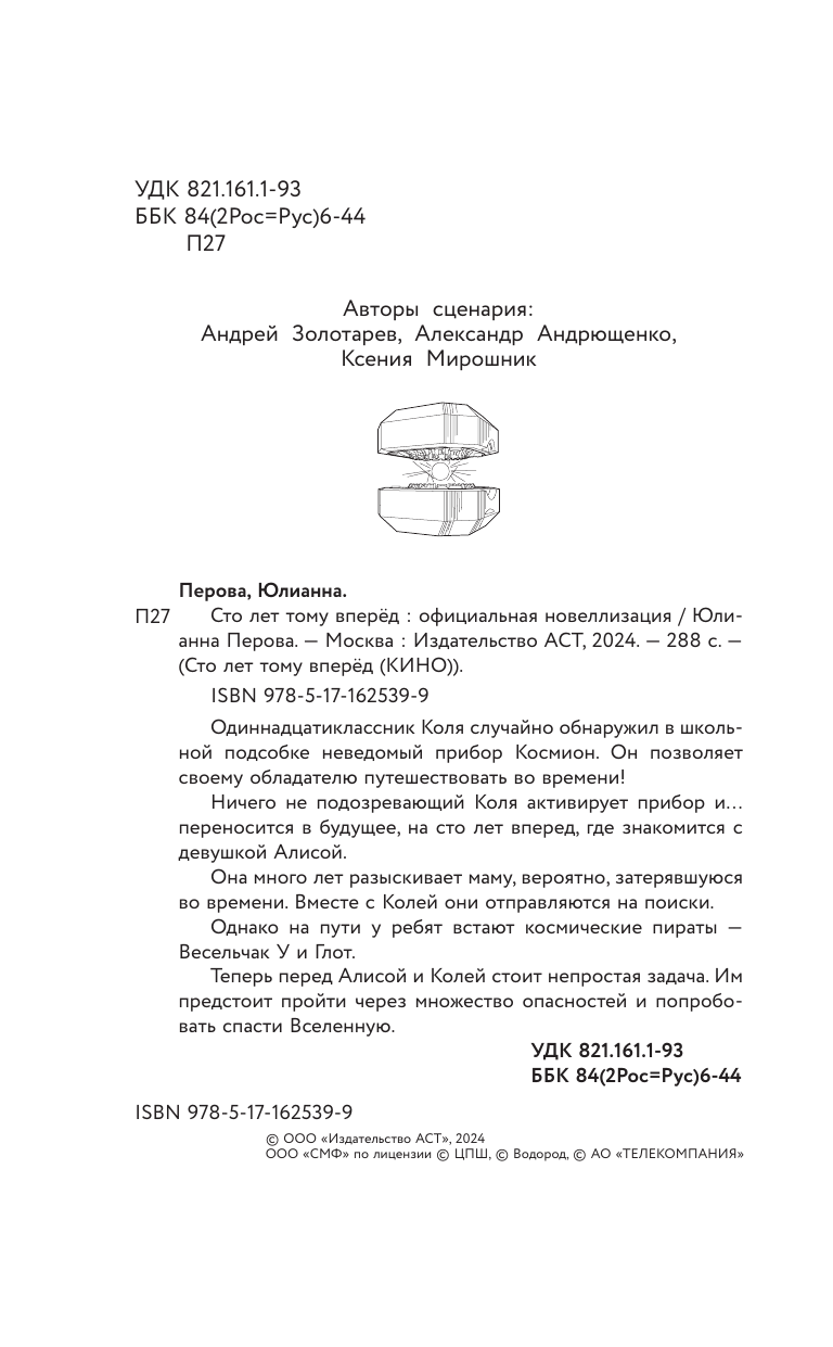 Сто лет тому вперед. Официальная новеллизация (Юлианна Перова); Издательство АСТ, 2024
