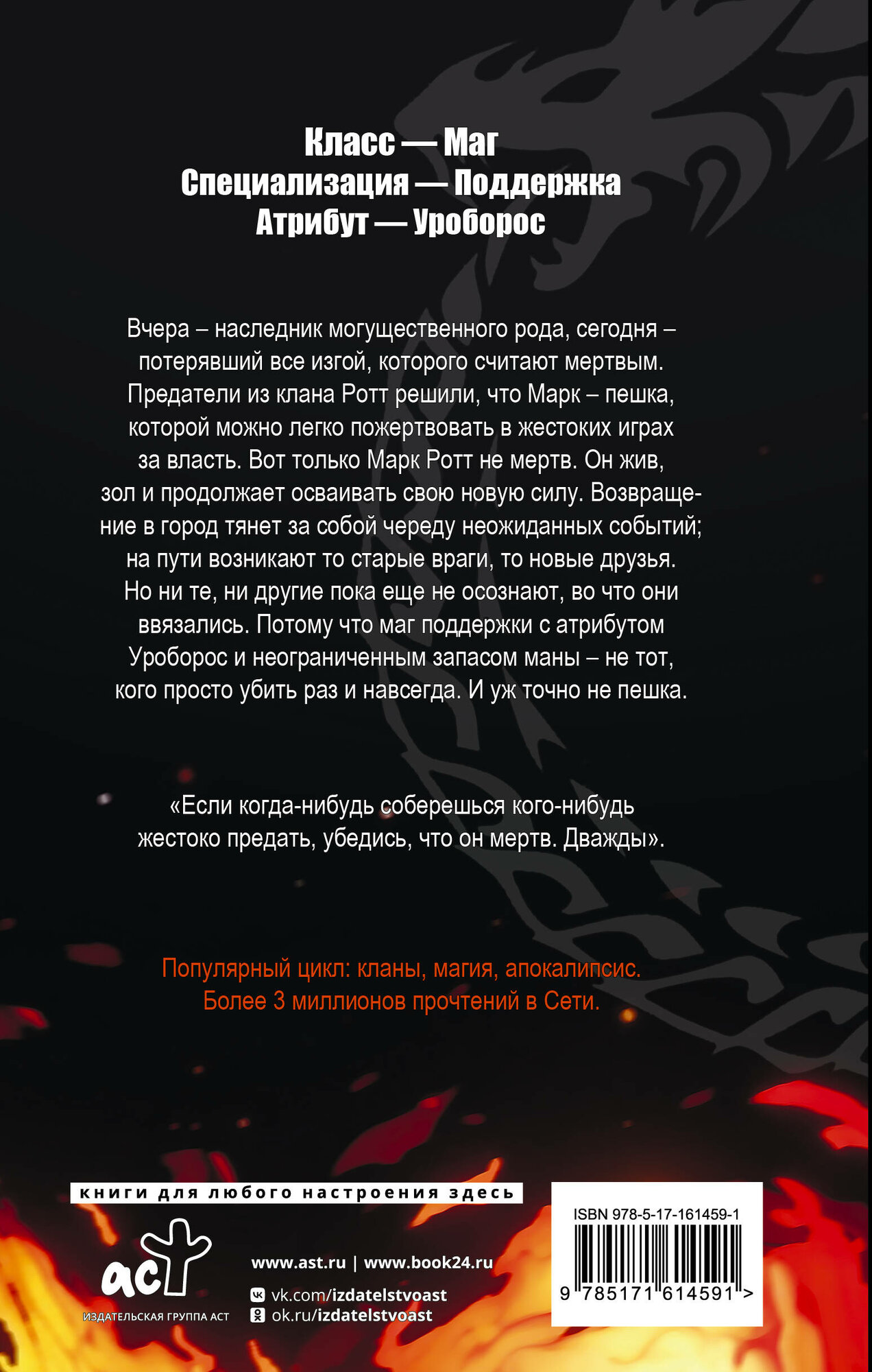 Вчера – наследник могущественного рода, сегодня – потерявший все изгой, которого считают мертвым.Предатели из клана Ротт решили, что Марк – пешка, которой можно легко пожертвовать в жестоких играх за власть. Вот только Марк Ротт не мертв. Он жив,зол и продолжает осваивать свою новую силу. Возвращение в город тянет за собой череду неожиданных событий; на пути возникают то старые враги, то новые друзья. Но ни те, ни другие пока еще не осознают, во что они ввязались. Потому что маг поддержки с атрибутом Уроборос и неограниченным запасом маны – не тот, кого просто убить раз и навсегда. И уж точно не пешка.«Если когда-нибудь соберешься кого-нибудьжестоко предать, убедись, что он мертв. Дважды».