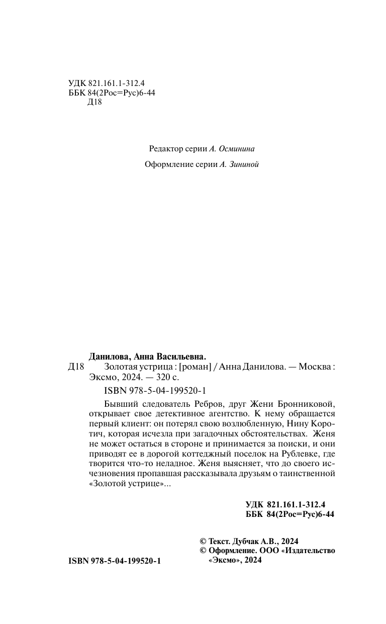 Книга: Золотая устрица (Данилова Анна Васильевна); ООО "Издательство "Эксмо", 2024