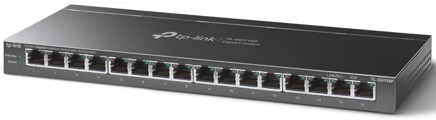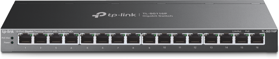 Коммутатор TP-LINK настольный с 16 гигабитными портами PoE+ TL-SG116P