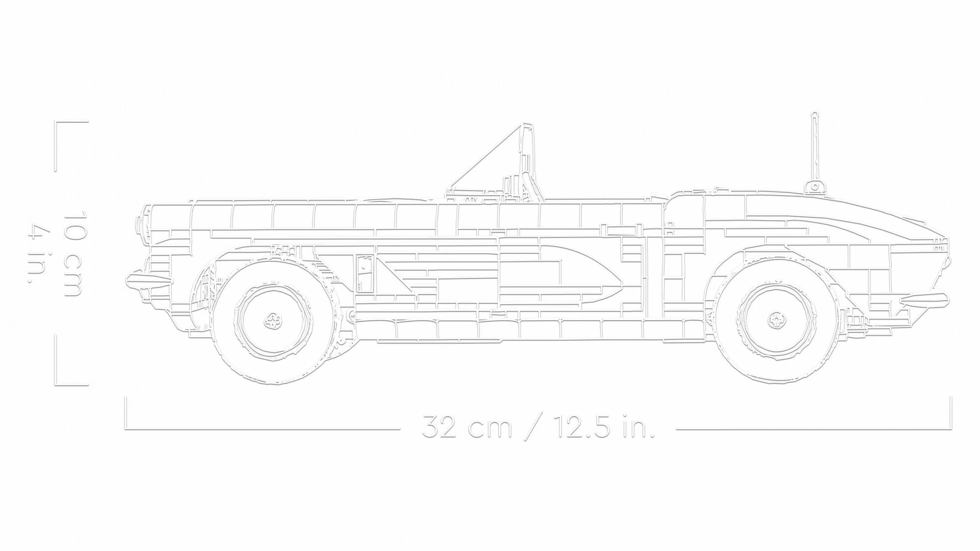 Откройте дверь в захватывающий строительный проект с помощью конструктора LEGO® 10 Series Chevrolet Corvette 1961 (10321) для взрослых. Запечатлейте внешний вид знаменитого спортивного автомобиля Chevrolet-кабриолет 1961 года, собирая каждую культовую деталь. Затем выберите между закрытым или открытым верхом и выставьте свое творение на всеобщее обозрение. • Создайте свой собственный Corvette — воспроизведите символ американской автомобильной истории с помощью строительного проекта Chevrolet Corvette 1961 года LEGO® Icons для взрослых. • Что в коробке? — Все, что вам нужно, чтобы воссоздать детализированную копию LEGO® знаменитого спортивного автомобиля-кабриолета Corvette 1961 года выпуска. • Особенности и функции — модель имеет открывающийся капот, детализированный моторный отсек с вращающимся вентилятором радиатора, работающую рулевую тягу, детали интерьера и съемную крышу для создания стиля с жестким или открытым верхом. • Аксессуары — эта коллекционная модель поставляется с 3 комплектами номерных знаков. • Идея для подарка — подарите этот набор LEGO® Icons Chevrolet Corvette 1961 года любителям моделей автомобилей и поклонникам культовых автомобилей. • Размеры — размеры модели «лего» более 10 см в высоту, 32 см в длину и 14 см в ширину