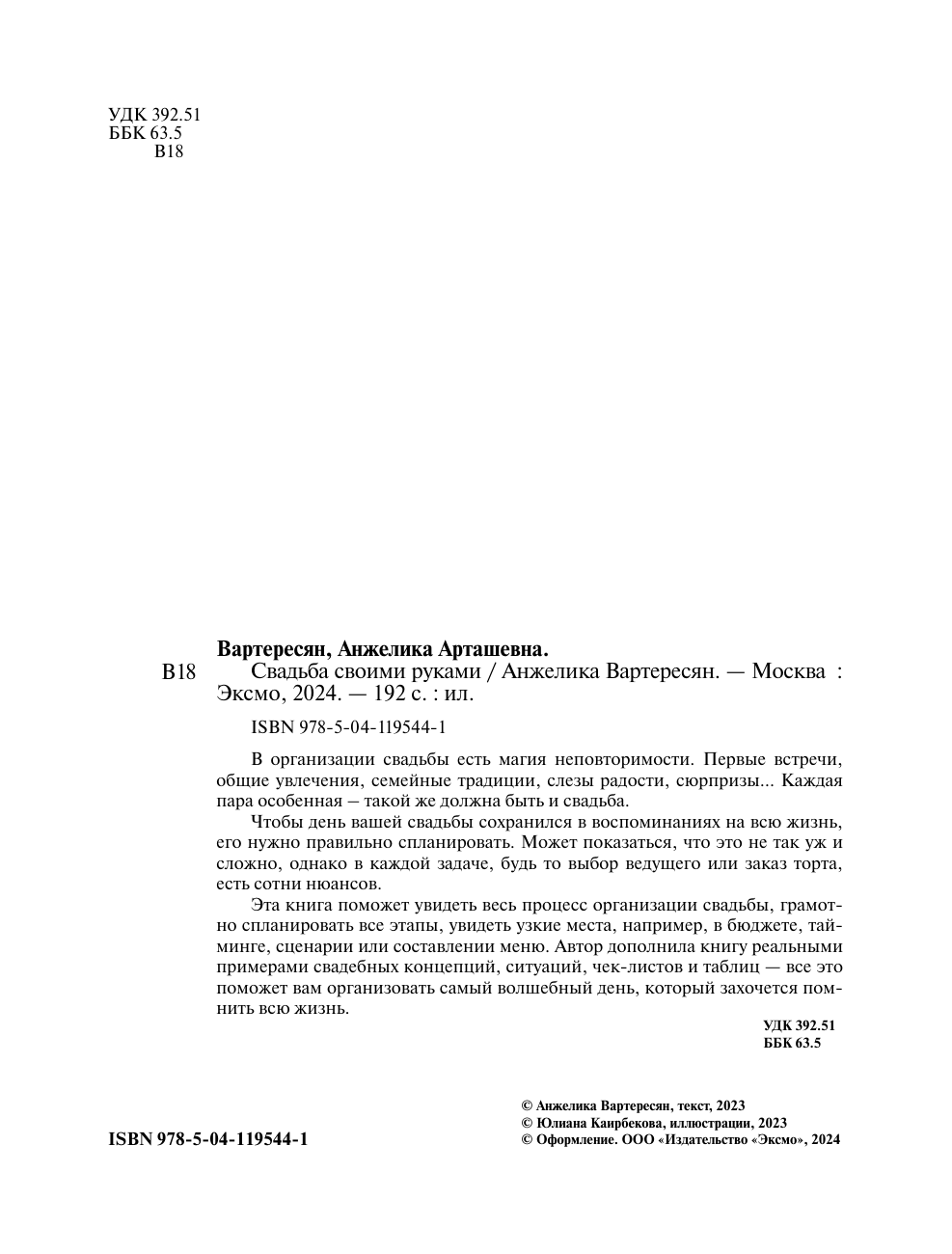 Свадьба своими руками. Пошаговый план для организации самого волшебного дня (Вартересян Анжелика Арташевна); ООО "Издательство "Эксмо", 2024