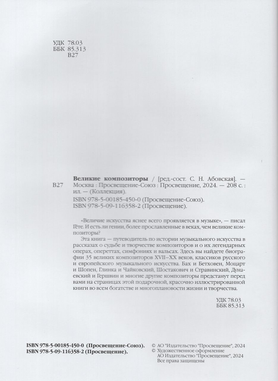 Книга: Великие композиторы (Абовская Светлана Наумовна (редактор)); Просвещение-Союз, 2025
