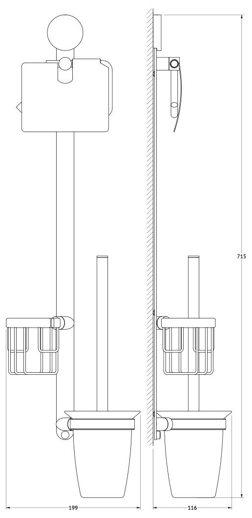 | Оснащение | крепления, бумагодержатель, ершик, держатель освежителя воздуха |