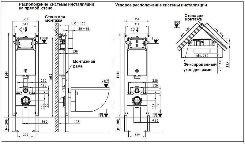 Система инсталляции для унитазов WeltWasser WW INS без кнопки Amberg 350