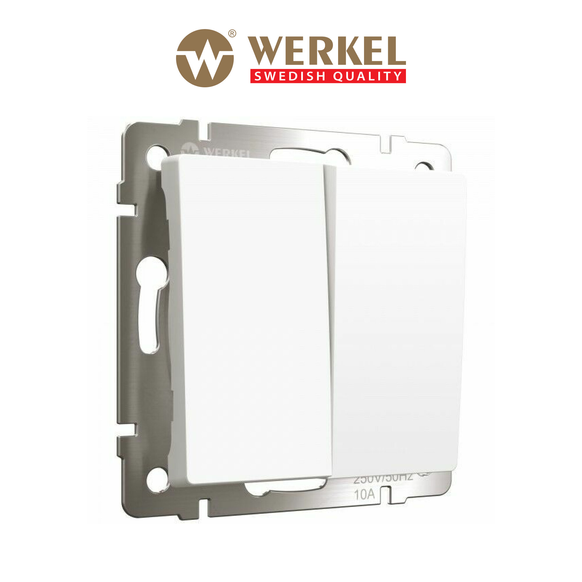 Механизм двухклавишного выключателя оснащен матовой лицевой панелью. Матовая поверхность – это современный тренд, задающий стиль вашему интерьеру. Она не бликует, обладает бархатистой фактурой и тактильной мягкостью. Белый цвет будет эффектно смотреться в любом интерьерном пространстве и гармонично сочетаться с любыми материалами.Механизм выключателя оснащен качественной контактной группой из фосфорной бронзы и технического серебра (90% серебра, 10% никеля), которая выдерживает большую нагрузку и обладает большим сроком службы.Суппорт из нержавеющей стали позволяет надежно зафиксировать изделие в подрозетнике. Механизм с суппортом из нержавеющей стали устанавливается в стандартную монтажную коробку и надежно фиксируется с помощью винтов и распорных лапок. Декоративные рамки легко устанавливаются и надежно фиксируются на суппорте при помощи клипс Easy Click.Механизмы с матовыми накладками комбинируются с любыми рамками Werkel. Совместимость дает большой простор в создании множества уникальных сочетаний.