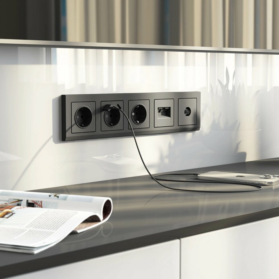 Рамка для розетки и выключателя Werkel Stark в цвете графит матовый 5 постов из поликарбоната. Для изготовления своей продукции компания использует только высококачественные материалы и комплектующие, а также инновационное оборудование. Рамки Werkel отличаются изяществом, плавностью линий и великолепной отделкой. Изделия прекрасно переносят эксплуатацию и не теряют своих эстетических качеств даже после долгих лет использования. Быстрый и удобный монтаж еще одно преимущество товаров шведского бренда. С установкой справится даже начинающий электрик, а при желании монтаж можно произвести и самостоятельно: достаточно следовать приложенной инструкции. Установка займет минимальное количество времени. Все рамки производятся из экологически чистых материалов в соответствии со всеми нормами безопасности. Изделия отличаются термоустойчивостью: выдерживают воздействие высоких температур. Устанавливая рамку Werkel, можно не беспокоиться о ее надежности. Рамка совместимы со всеми встраиваемыми механизмами Werkel™. Все механизмы имеют клипсы Easy Click, которые обеспечивают простоту монтажа и позволяют легко соединять механизмы и рамки разных серий. Серия Stark представлена в 6 цветах – серебряный матовый, графит матовый, белый, серебряный, слоновая кость и черный. Строгий стиль и классические формы безупречно сочетаются в традиционной серии Stark, прямые линии рамок и механизмов легко вписываются в любой интерьер.