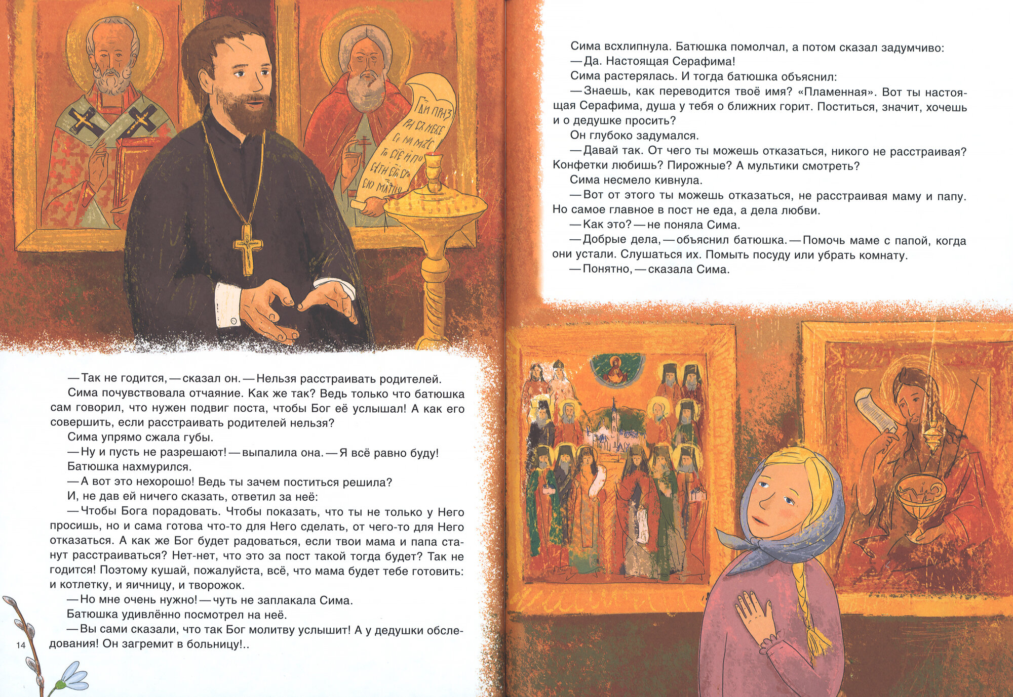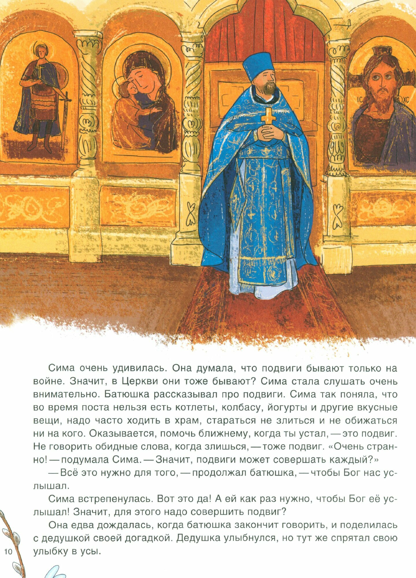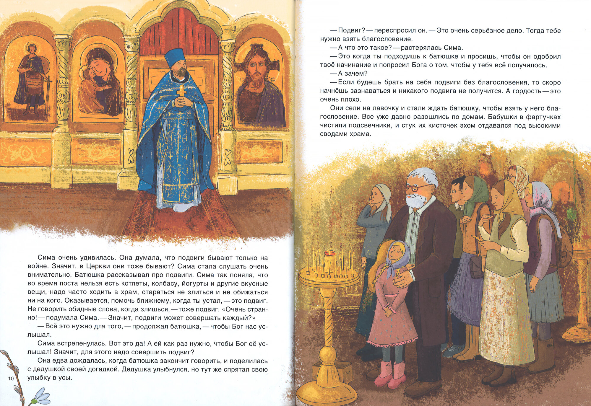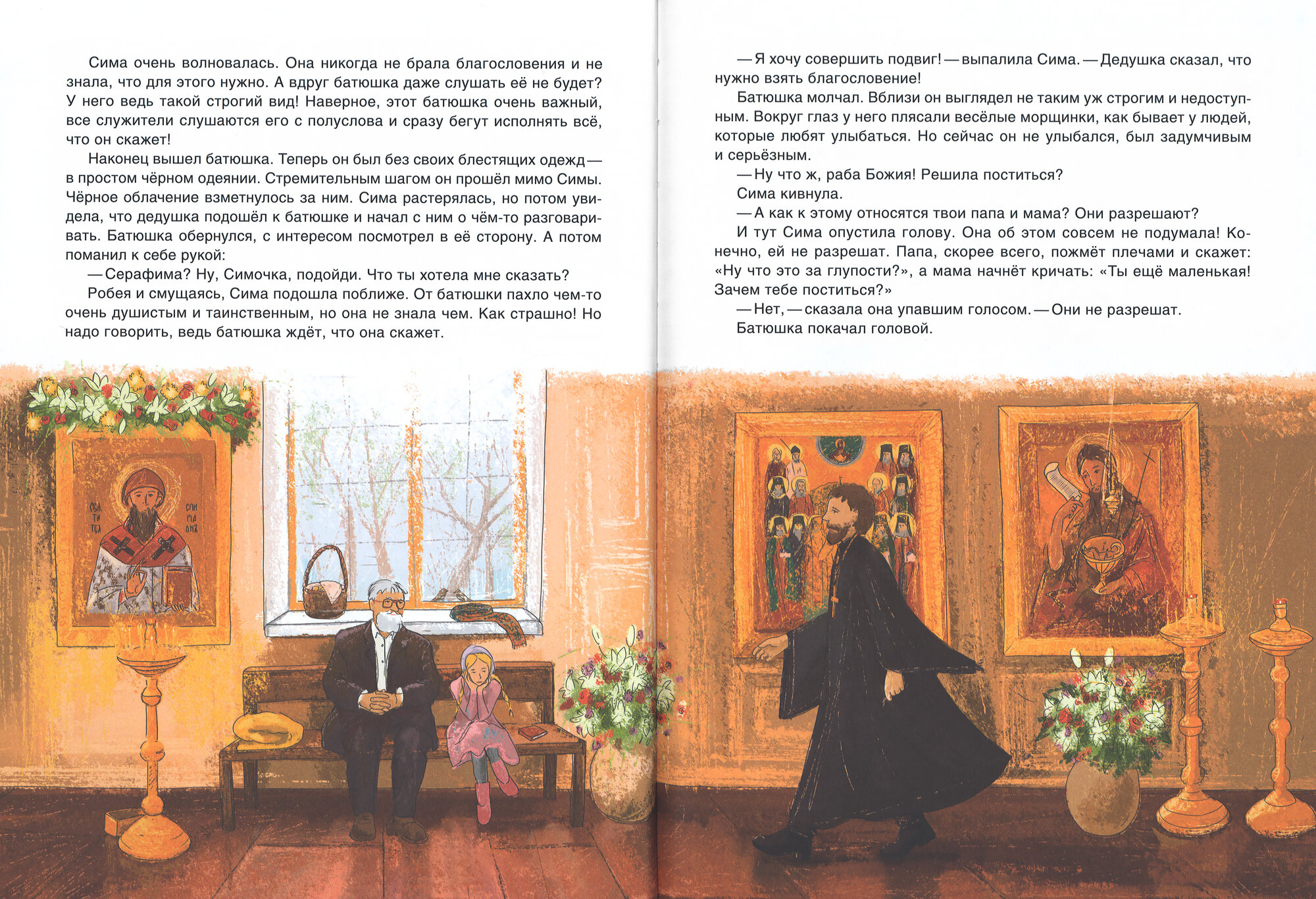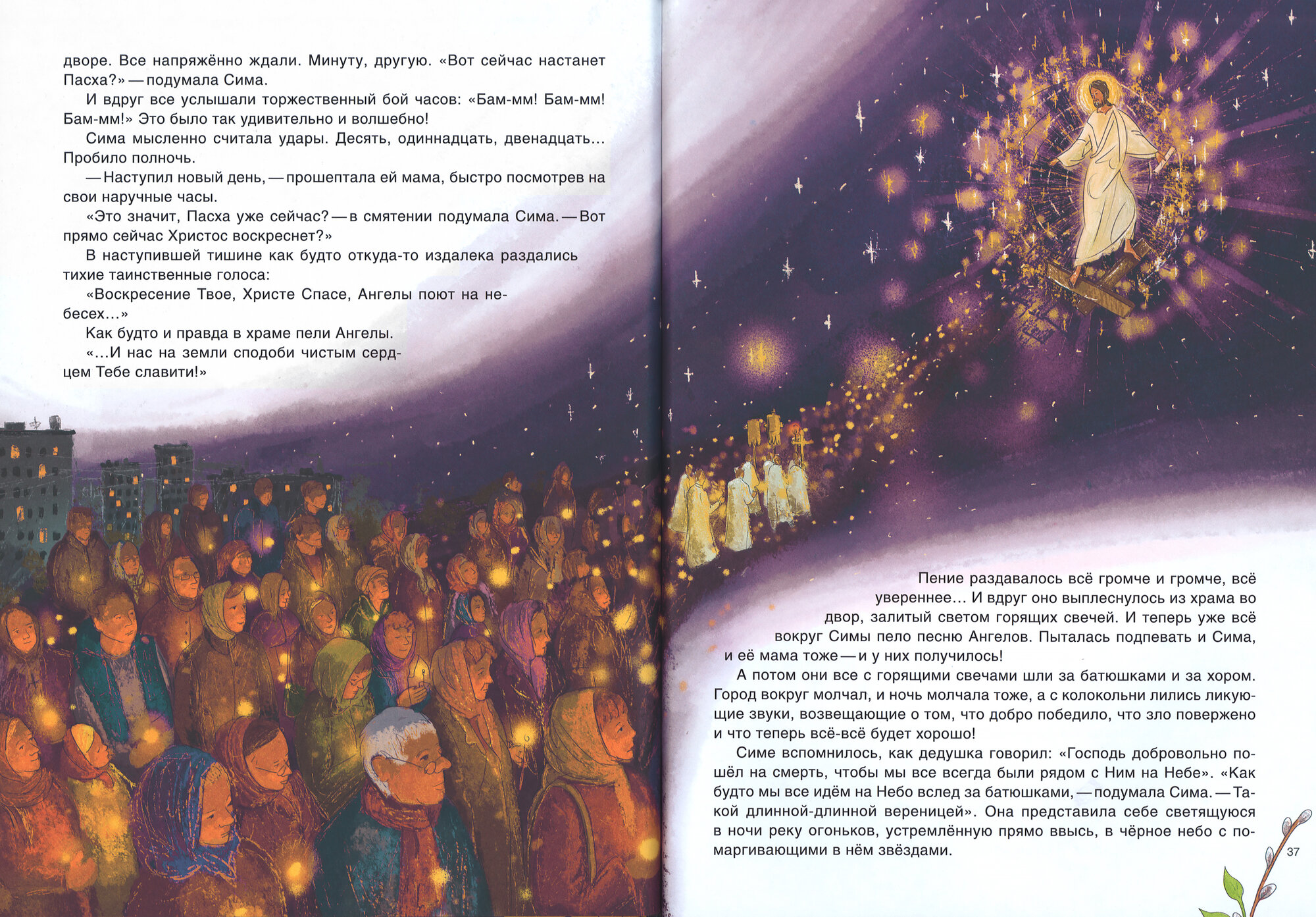 Это вторая книга о девочке Симе. В первой книге, «День Рождения Христа», рассказывается о том, как Сима праздновала Рождество вместе с дедушкой. Это было очень весело! В этот раз ей предстоит встречать самый главный православный праздник — Пасху. Она узнает много нового и интересного: зачем и как нужно поститься, что такое благословение и для чего нужно его брать, как хорошо бывает, когда искренне раскаешься в своих плохих поступках, и как сильна общая молитва, которая творит чудеса. А главное, она поймёт, как нас любит Господь, Который ради каждого из нас и нашего спасения страдал, умер и воскрес из мёртвых!