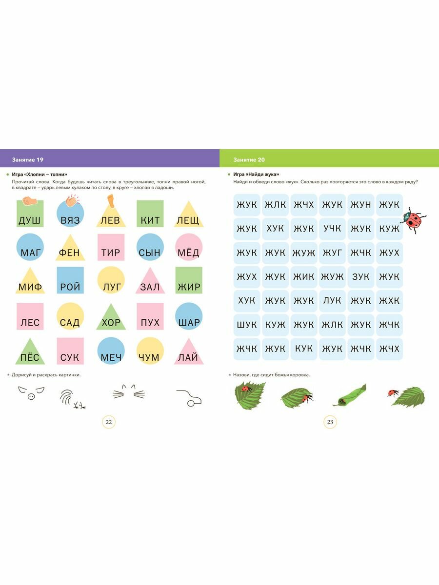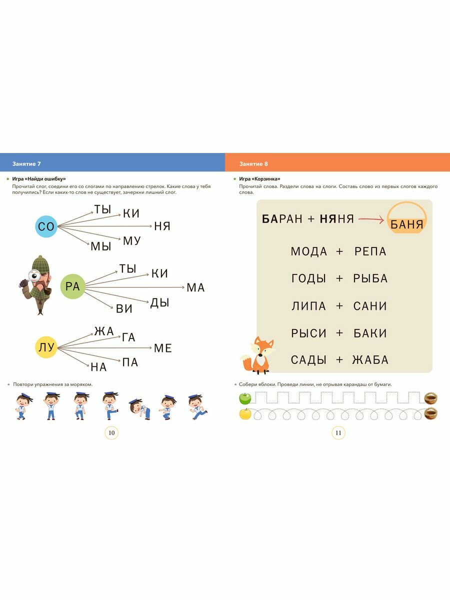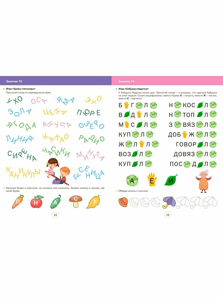 В возрасте 5-7 лет формируется та база, которая в дальнейшем позволит осваивать учебный материал более продуктивно и легко. Данное пособие помогает развивать зрительное восприятие, память, мышление, концентрацию и переключение внимания, зрительно-пространственные функции, звуко-слоговой анализ и синтез. Игры способствуют развитию навыка беглого и выразительного чтения, увеличению словарного запаса. Задания читает взрослый.
