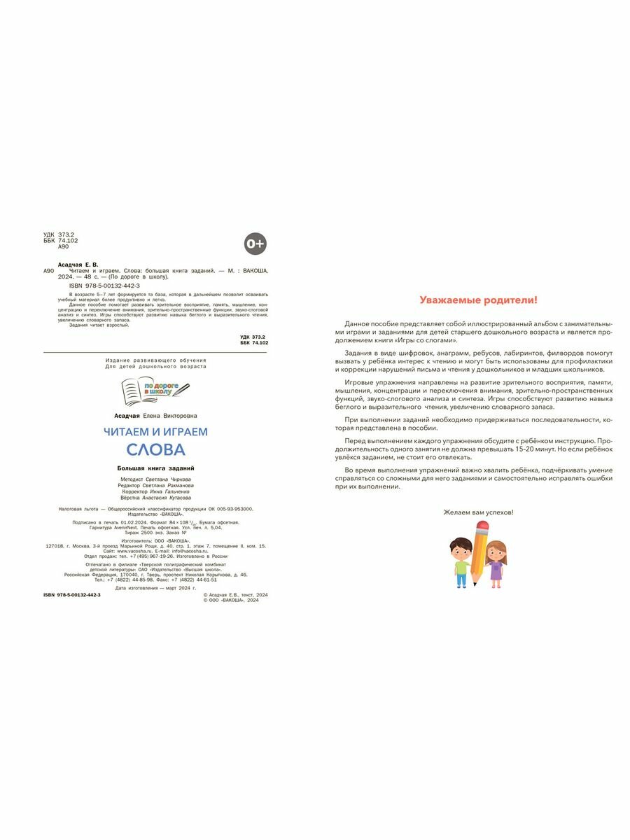 Читаем и играем. Слова. Большая книга заданий (Асадчая Елена Викторова); Вакоша, 2024