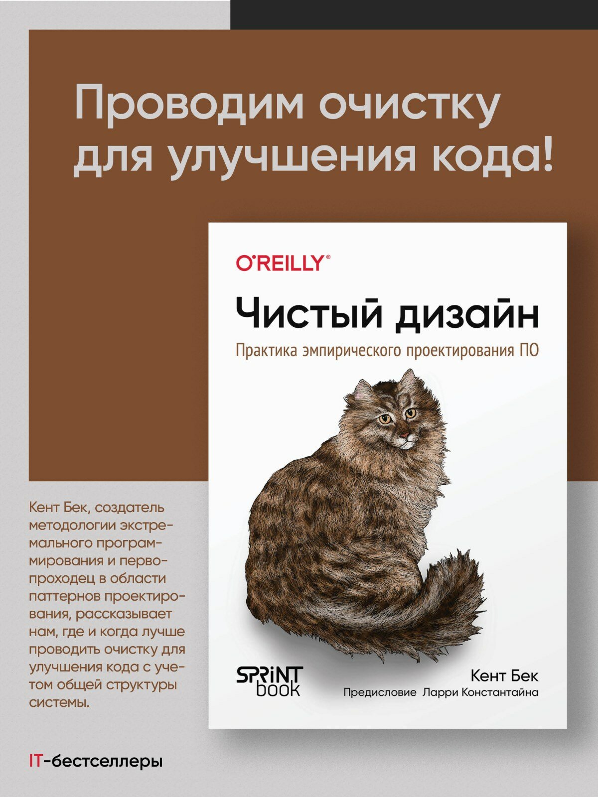 Грязный код создает проблемы. Чтобы код было проще читать, проходится проводить его очистку, разбивая на части, с которыми удобно работать. Кент Бек, создатель методологии экстремального программирования и первопроходец в области паттернов проектирования, рассказывает нам, где и когда лучше проводить очистку для улучшения кода с учетом общей структуры системы.
