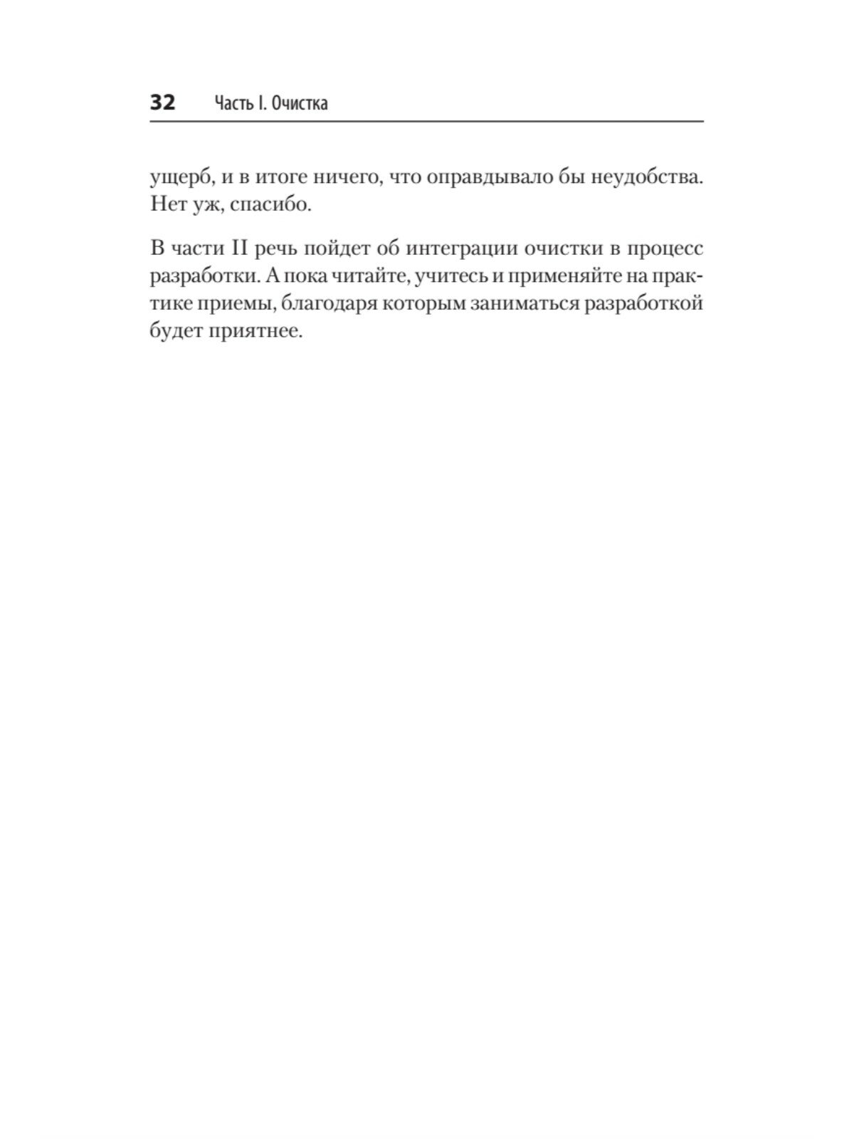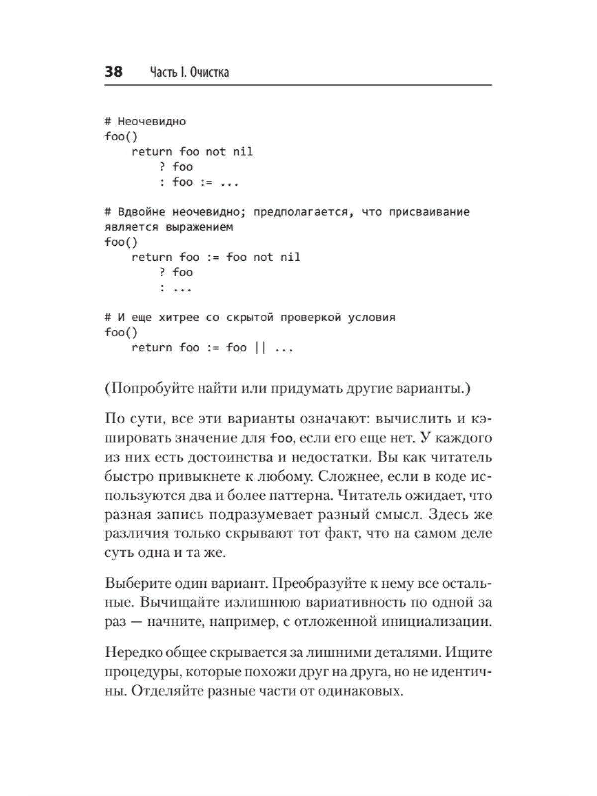 Книга не заставляет читателя проводить очистку сразу и целиком, а позволяет протестировать несколько примеров, которые подходят для поставленной задачи. Вы узнаете, как логически разделить на части большую функцию, содержащую множество строк кода. Познакомитесь с теоретическими понятиями программного дизайна: сцеплением, связностью, дисконтированными денежными потоками и вариативностью.