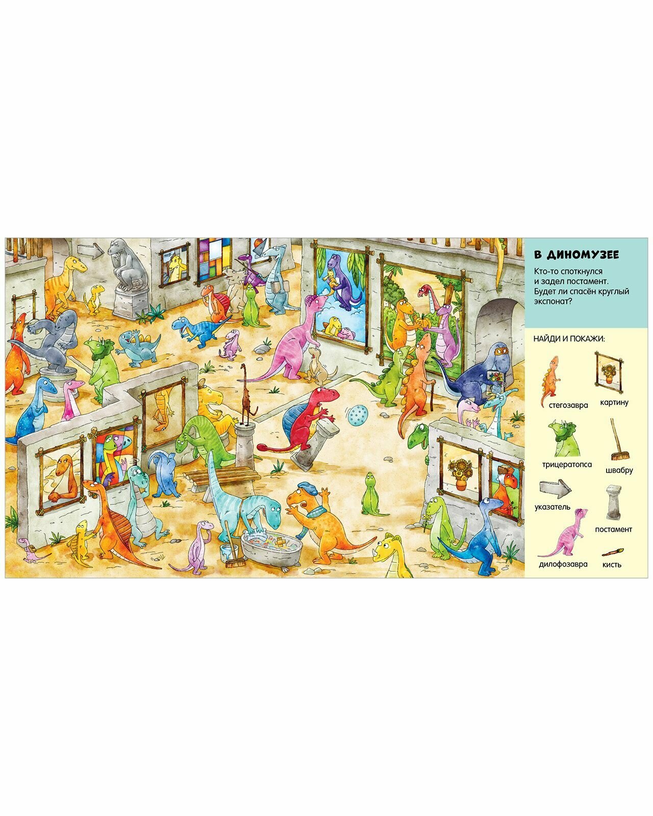 Добро пожаловать в удивительный мир динозавров! Жители Динограда спешат по делам, в музее открывается новая выставка, на стройке работа идёт полным ходом, а диномалыши играют в детском саду. Отправляйтесь на весёлую доисторическую прогулку вместе с милыми динозаврами! В этой книге маленьких поклонников динозавров ждут детальные иллюстрации и любимая детская игра «найди и покажи». На каждой странице спрятаны разные предметы, которые нужно отыскать.