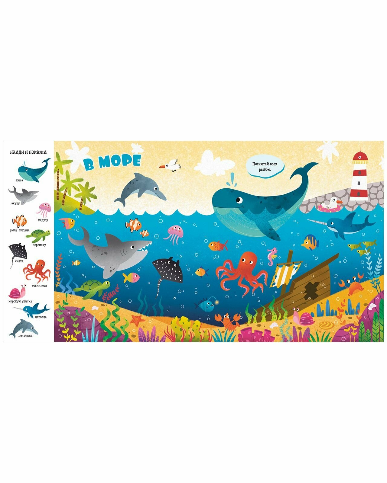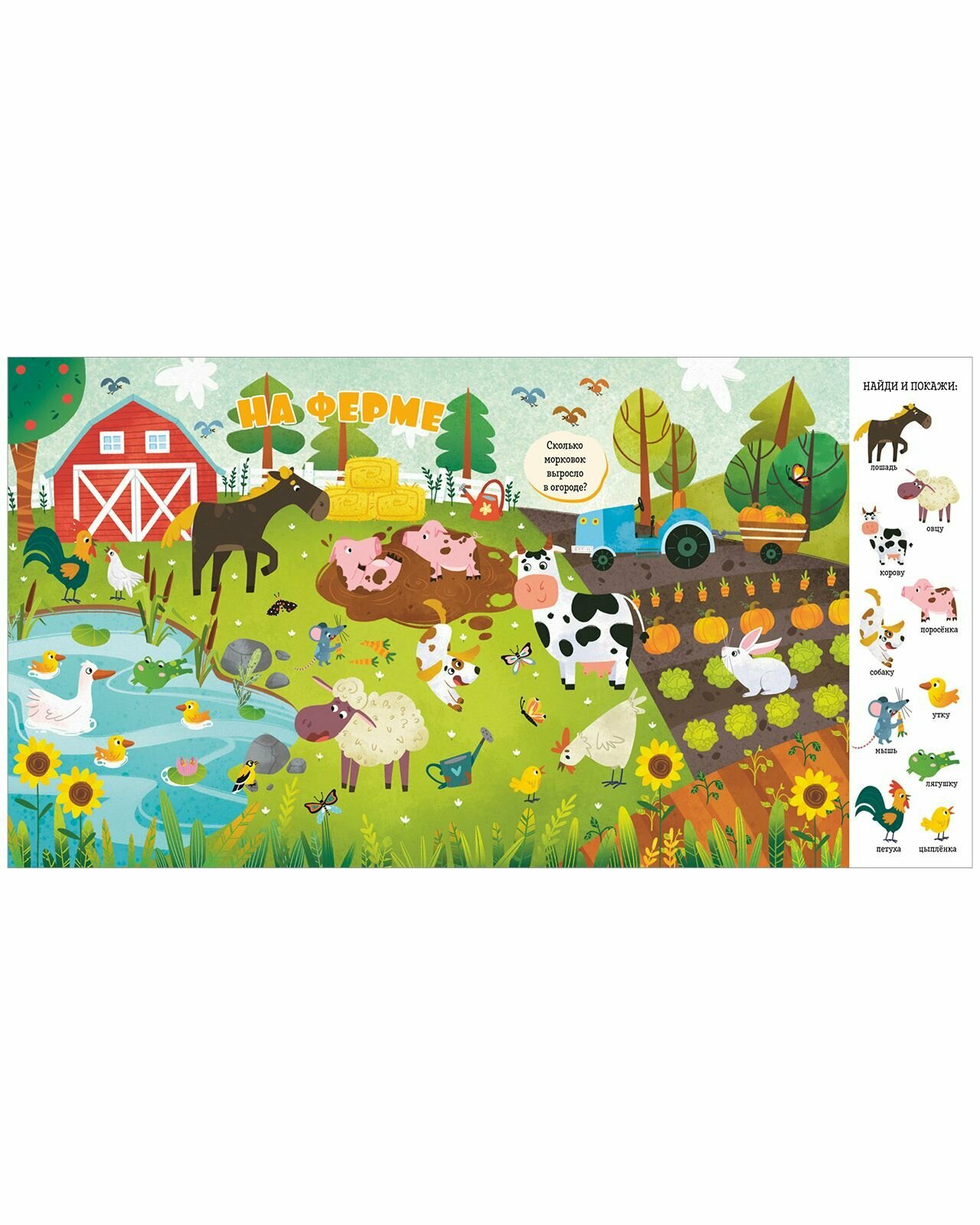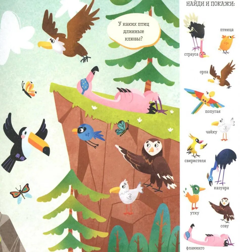 Эта книга поможет превратить обучение в весёлую игру! На её страницах малыша ждут любимая игра «найди и покажи», забавные животные и разные предметы для поиска - идеальное сочетание для развития речи и внимательности вашего малыша. 10 тем для изучения и игры: В джунглях В лесу В море Птицы На ферме В Арктике В пустыне В магазине На пляже В бассейне