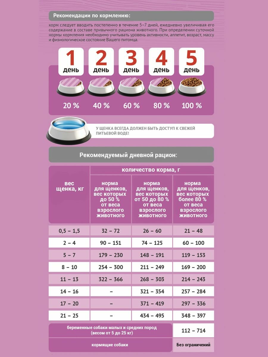 Полнорационный сухой корм для щенков с 2 месяцев малых и средних пород. Подходит для ежедневного кормления щенков, а также беременных и кормящих сук.